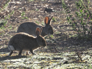 En este caso se observa un conejo en la mañana próximo a su madriguera en la sierra caliza.