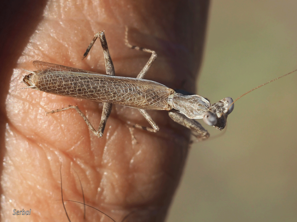 2-3 cm. Pequeña Mantis de la familia Amelidae; se distribuye por el área mediterránea occidental, tanto al sur como al norte del Mediterráneo; frecuente en las zonas más cálidas de la Península Ibérica.