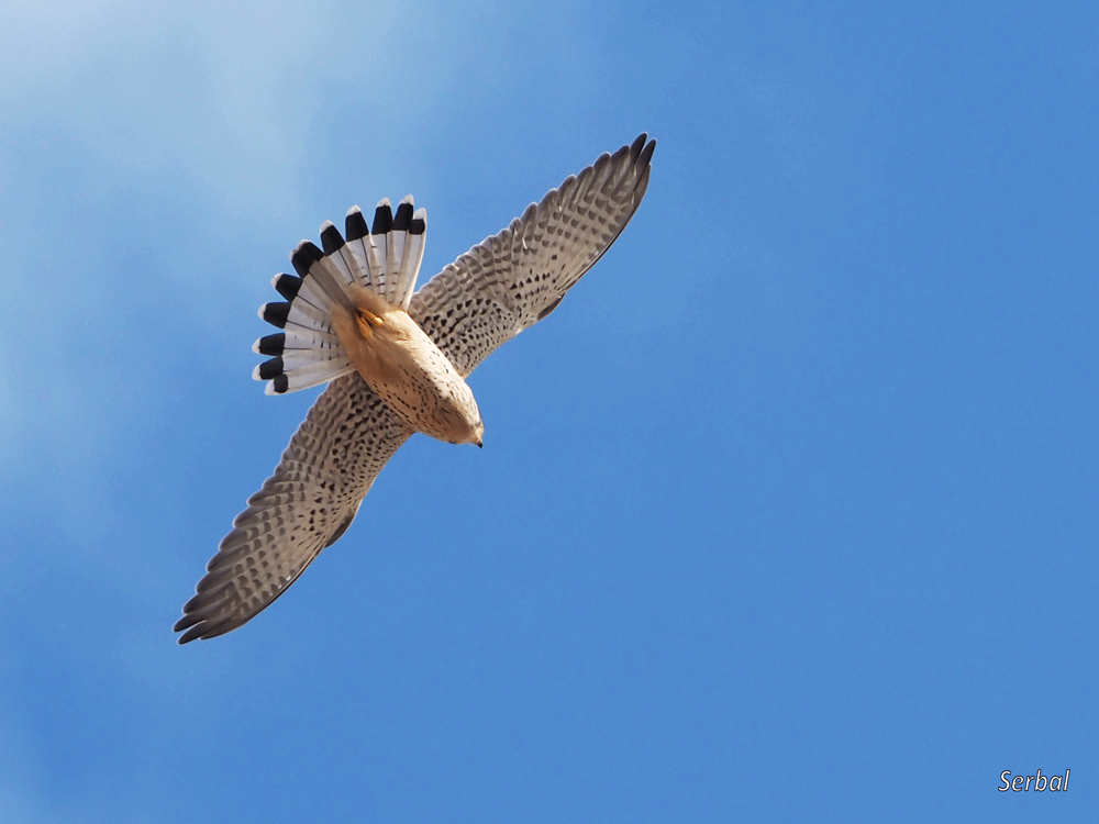31-37 cm de longitud y 70-80 cm de envergadura. El Cernícalo vulgar es uno de los halcones (Falconidae) más comunes, se distribuye por Eurasia y África, en la Península Ibérica es residente, aunque nos visitan en invierno ejemplares en migración o invernantes.