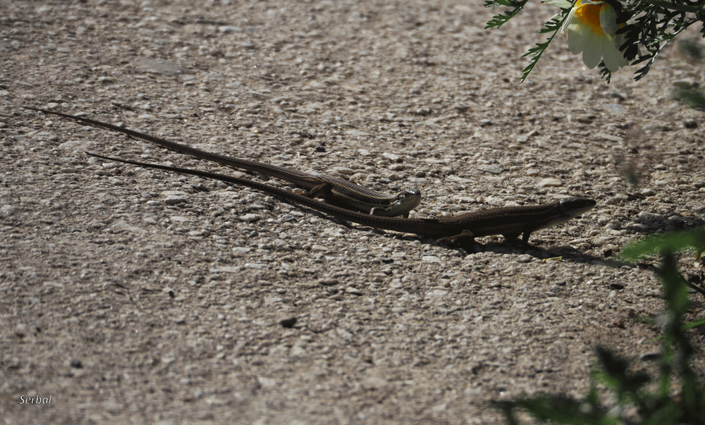 A veces trepa por los arbustos y toma el sol sobre sus ramas u hojas.
