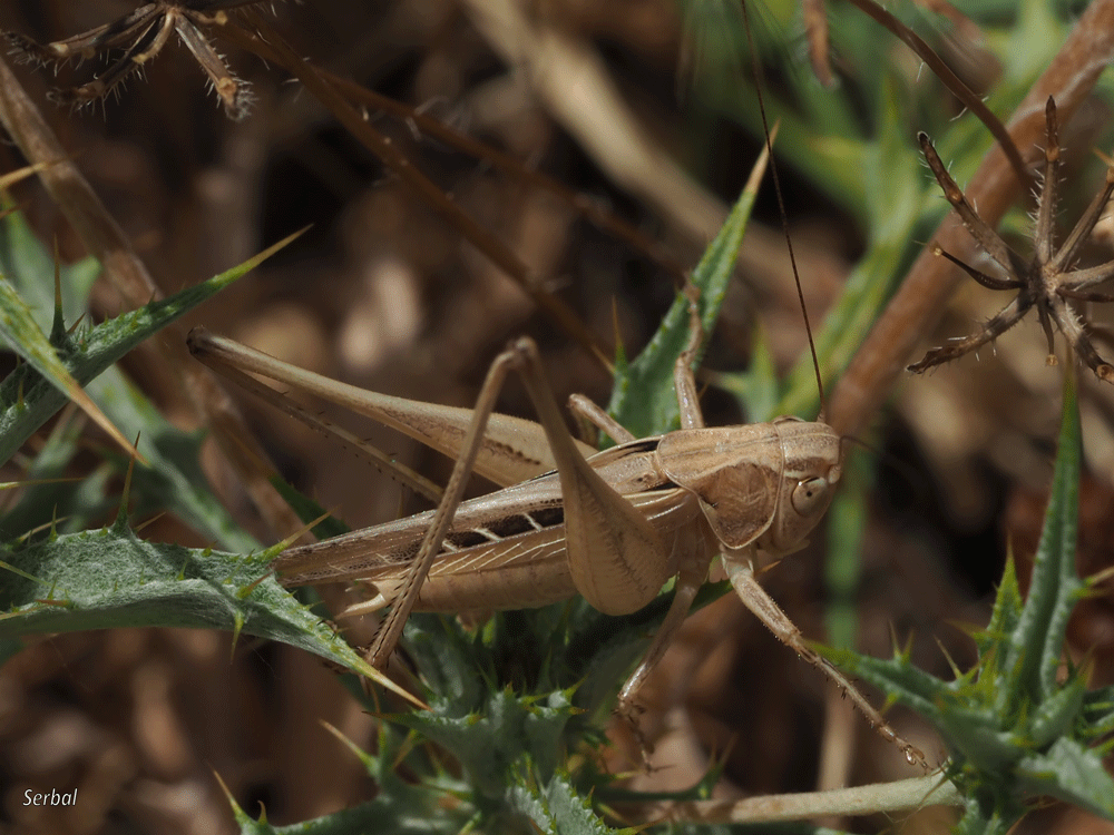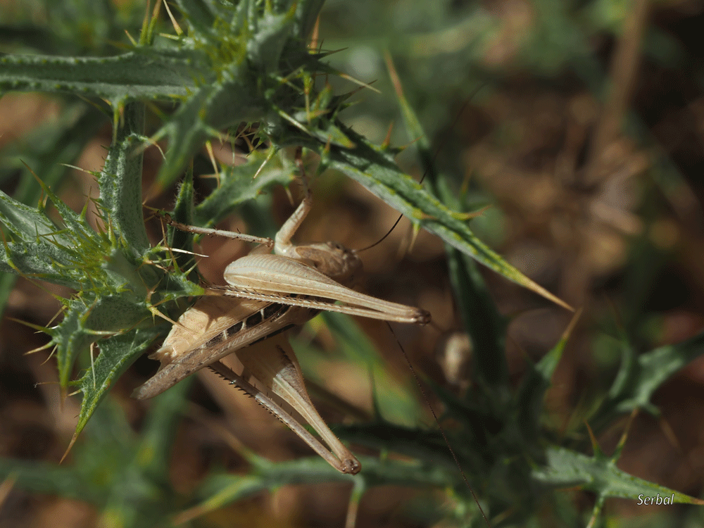 Este bonito y pequeño grillo de matorral mide 13-17 mm, pertenece a la familia Tettigoniidae; vive en sur de Europa, norte de África y Asia, desde el nivel del mar hasta 2000 msnm en la Península Iberica en zona de matorral y pastos.