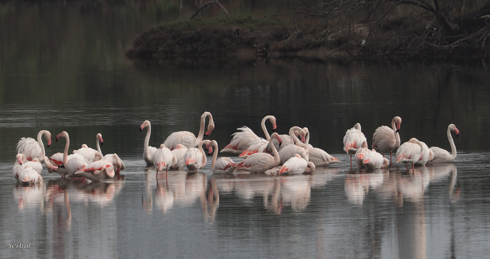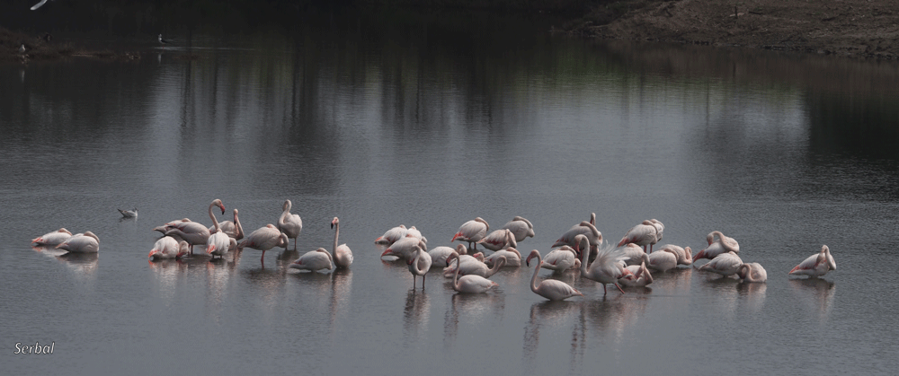 Viaja y cría en grupos, estableciéndose en colonias en las zonas cálidas de Europa, en la península Ibérica crían principalmente en Fuentepiedra (Málaga), Doñana y Delta del Ebro; se alimenta en numerosas zonas donde haya lagunas, marismas, salinas, esteros, etc., siempre en agua salada o salobre con poca profundidad, para ello mete la cabeza en el agua con el pico invertido y lo agita hacia los lados removiendo el fondo, esto le permite filtrar con las «laminillas» de su pico los pequeños microorganismos (especialmente microcrustáceos) y restos de materia vegetal de los que se alimenta.
