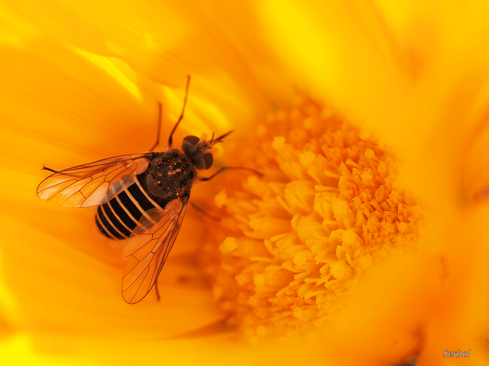 Es muy común sobre las flores en primavera, especialmente las amarillas.