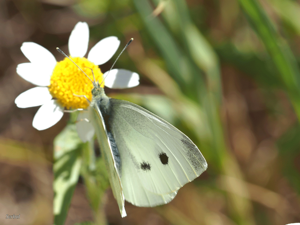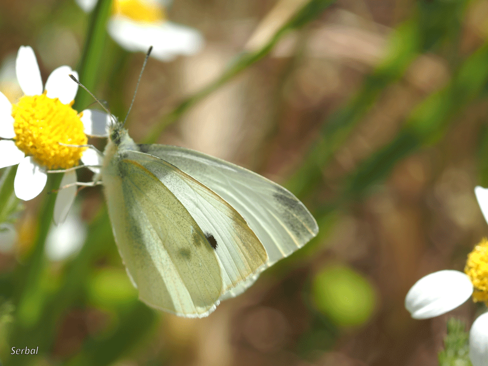 4-5 cm. Mariposa de la familia Pieridae, muy abundante en la Península Ibérica, y posiblemente de las mas abundantes de Europa, también se distribuye por Asia y Norte de África; introducida en Norteamérica.