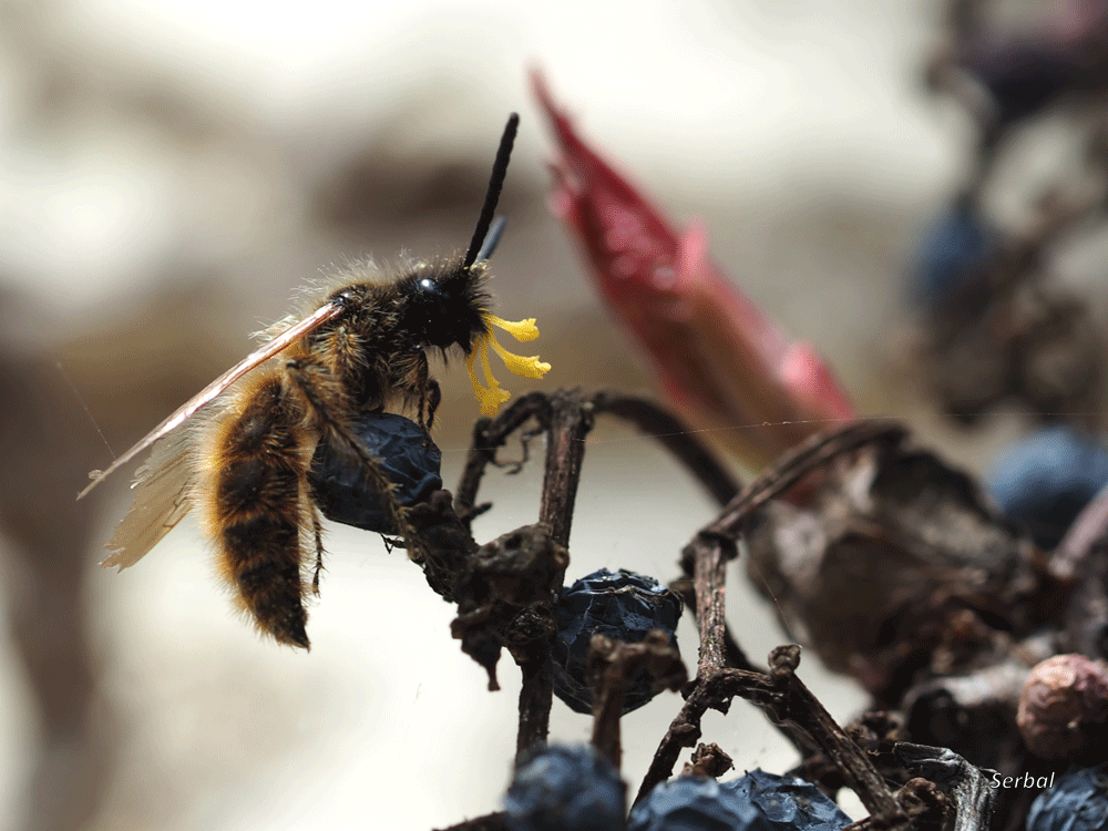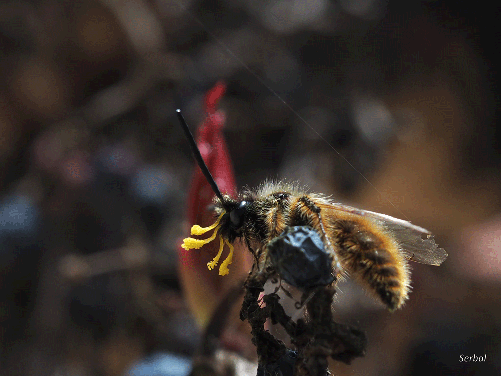 Abril 2025, curioso macho con lo que parecen 4 estambres pegados en la zona frontal de la cabeza, Serranía de Ronda, en mi jardín.