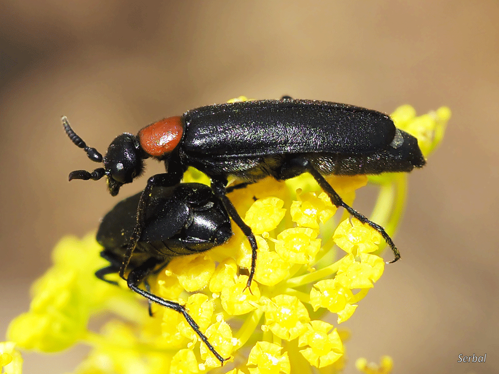 10 mm. Escarabajo pequeño de la familia Meloidae que se distribuye por la Península Ibérica y norte de África.