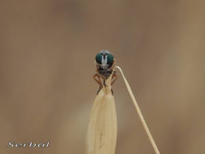 8-10 mm. Pequeña mosca de la familia Asilidae y subfamilia Laphriinae; se distribuyen por el área mediterránea; única especie de este género en la Península Ibérica.