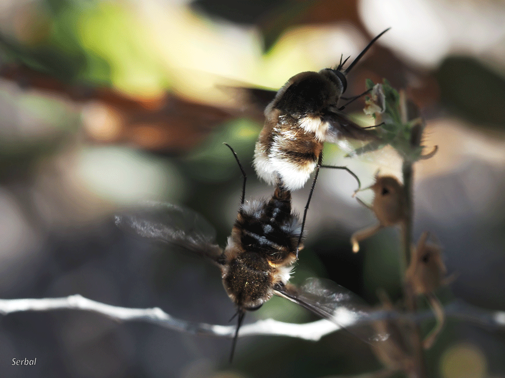 11 mm. Díptero de la familia Bombyliidae que se distribuye por los países circunmediterráneos de Europa, Oriente Próximo y norte de África; bastante frecuente en la Península Ibérica en zonas soleadas y preferencia por suelos calcáreos. Bombylius de los más grandes.