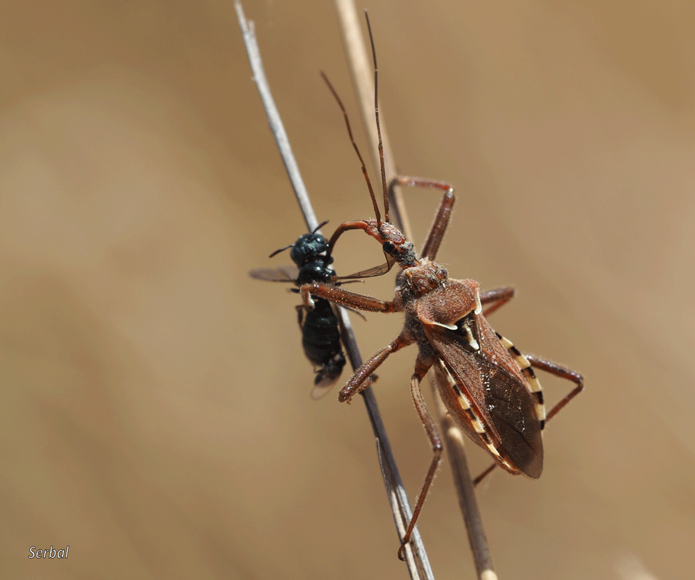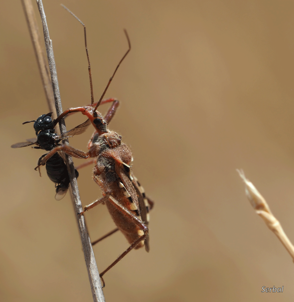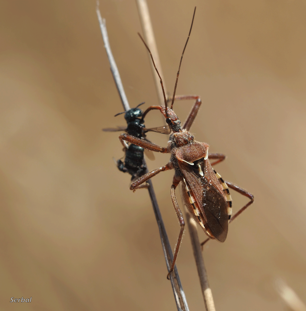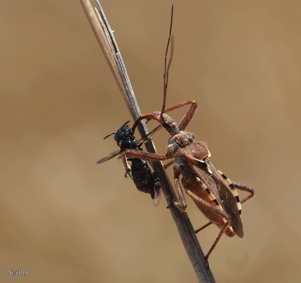 Estas llamadas chinches asesinas se alimentan de otros insectos, los acechan sobre las flores, especialmente umbelíferas, y los capturan con su larga probóscide y sus fuertes patas, luego sorben sus jugos con el mismo estilete, pueden ser útiles en el control de plagas.