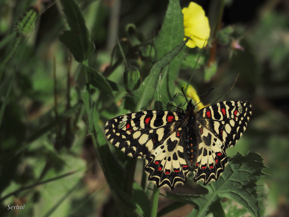 40-50 mm. Mariposa media-grande de la familia Papilionidae; se distribuye por toda la Península Ibérica (con excepción de la zona Cantábrica y noroeste peninsular), sureste de Francia y norte de África.