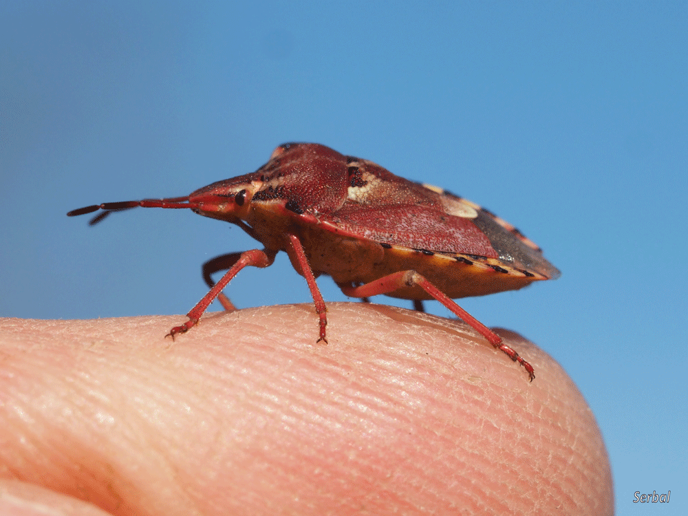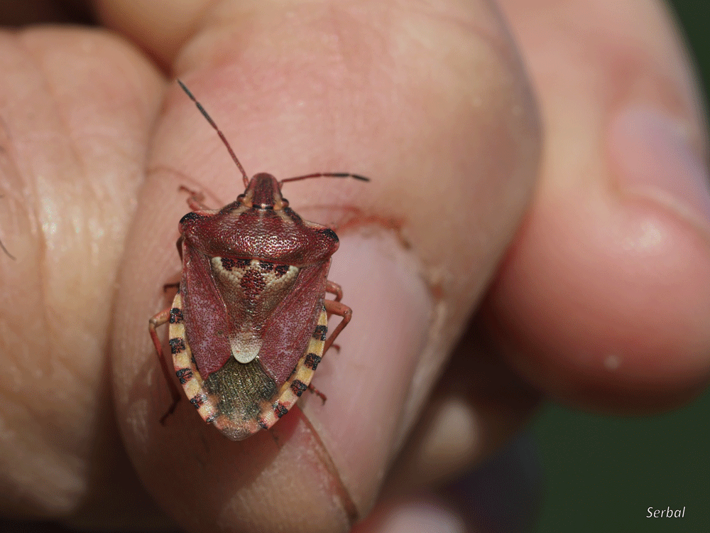 10-15 mm. Chinche de tamaño medio de la familia Pentatomidae; se distribuye por la mayor parte de Europa; común en la Península Ibérica.