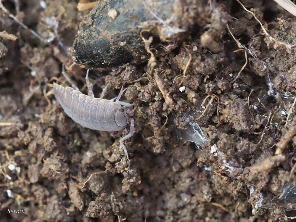 15 mm. Cochinilla de la humedad de la familia Porcellionidae; es originaria de Europa, pero actualmente se considera cosmopolita; distribuida por toda la Península Ibérica.