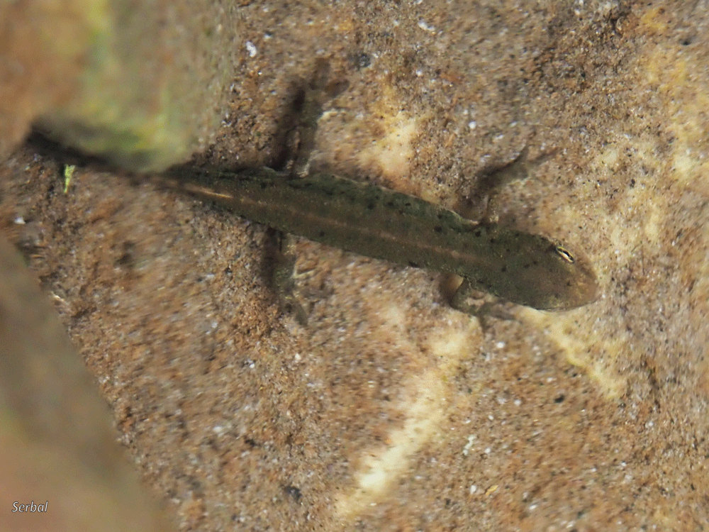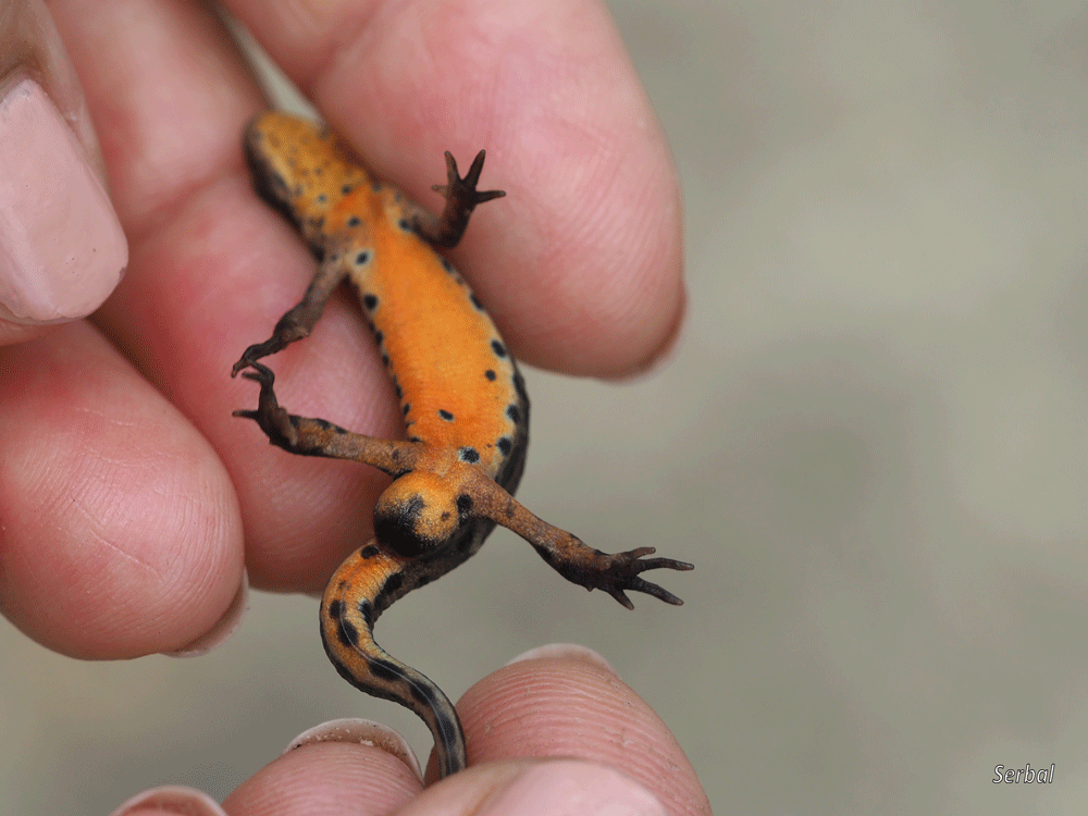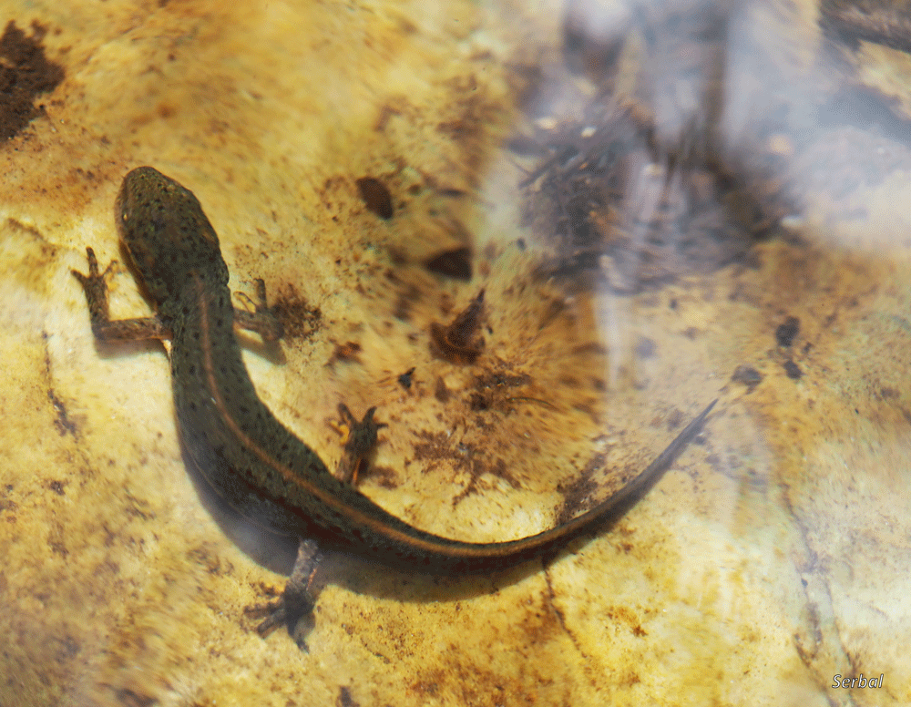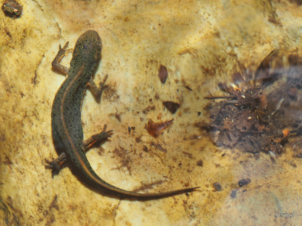 7-9 cm. Pequeño tritón de la familia Salamandridae; es un endemismo ibérico que se encuentra en la zona noroeste peninsular y occidente peninsular hasta Doñana.