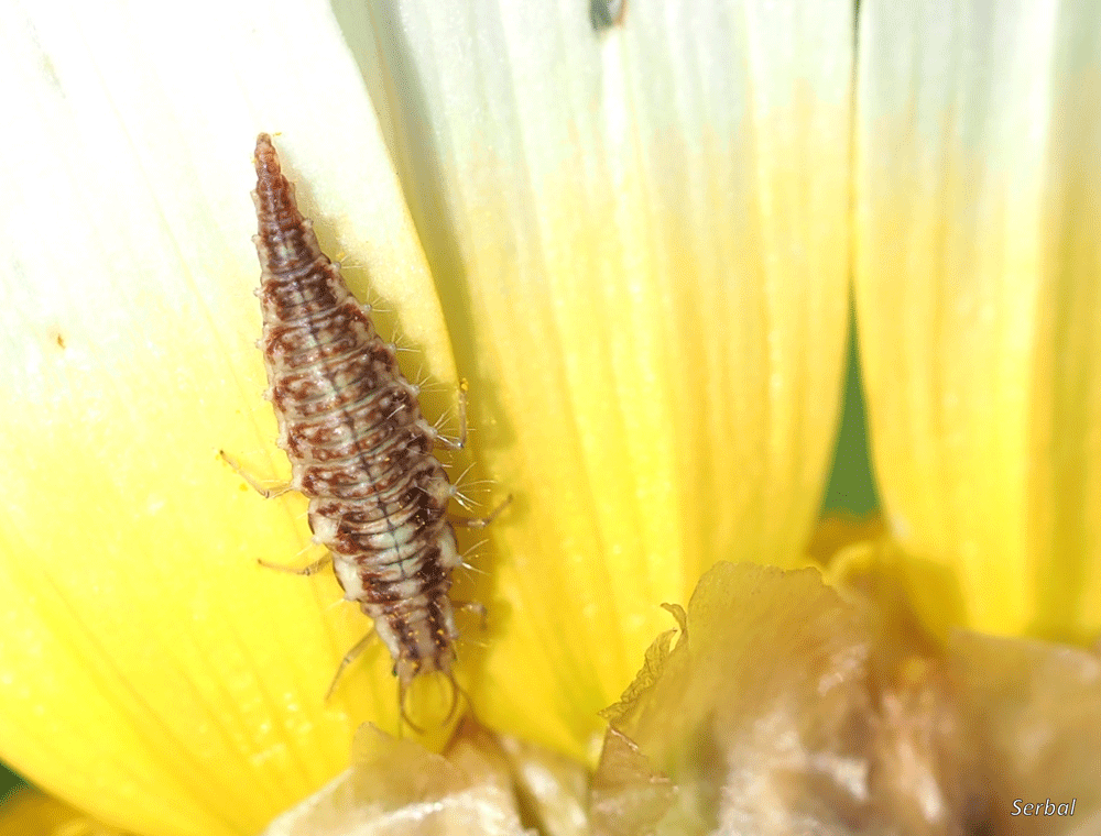 Las larvas que emergen son insectívoras, son larvas con una pinza en el extremo, esta pinza les facilita sujetar a sus presas, inyectarle jugos que la predigieren y succionar sus contenidos, sus presas más habituales son pulgones, arañas rojas, mosca blanca, etc., por lo que tiene un papel muy beneficioso para la agricultura, especialmente la ecológica; llegando incluso a comercializarse sus larvas, como método de control biológico de plagas.