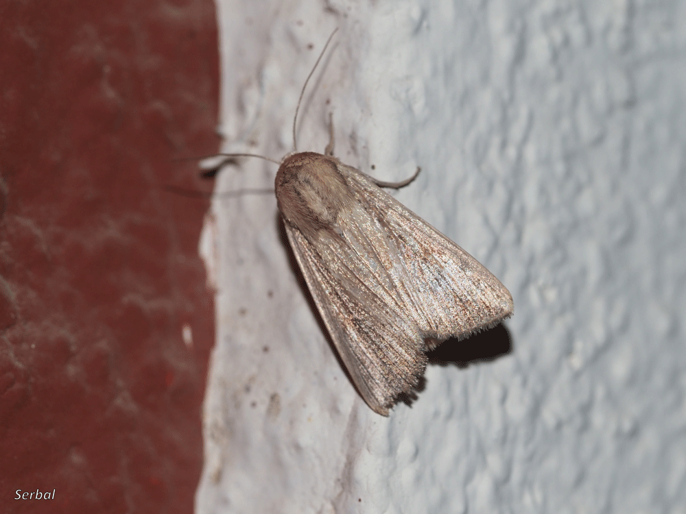 33-44 mm. Mariposa nocturna de la familia Noctuidae; se distribuye por la mayor parte del mundo de clima cálido, podríamos decir cosmopolita; común en la Península Ibérica.