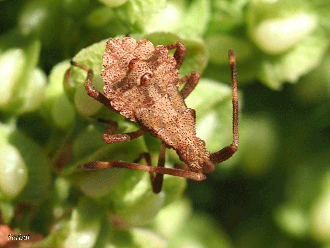 10-15 mm. Chinche de tamaño medio de la familia Coreidae; se distribuye por la mayor parte de Europa, Asia central hasta China y norte de África; bastante común en la Península Ibérica.