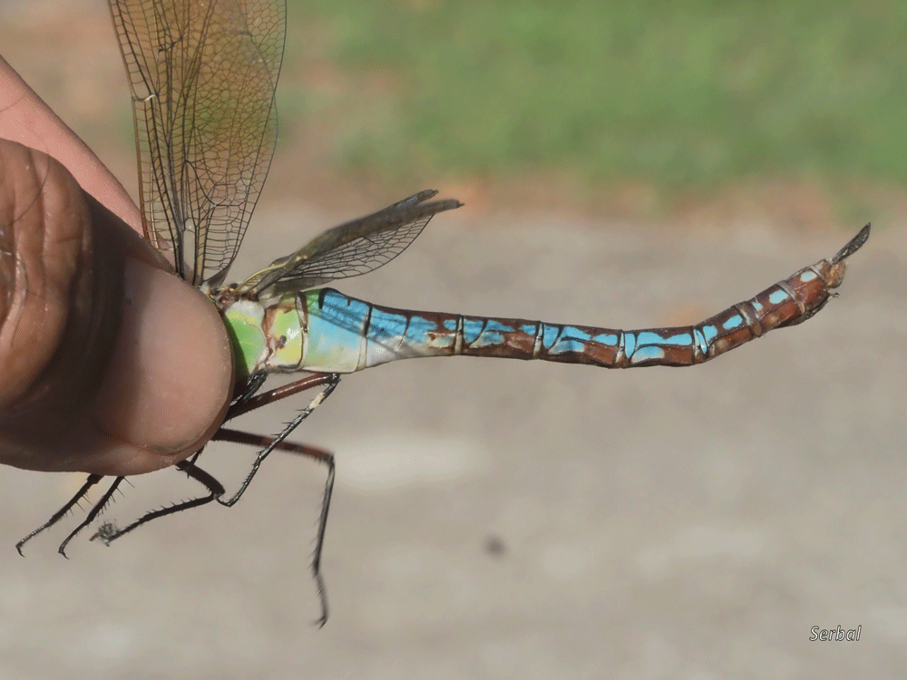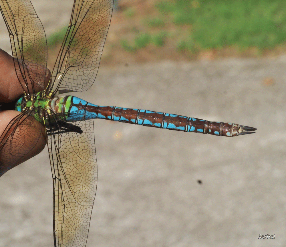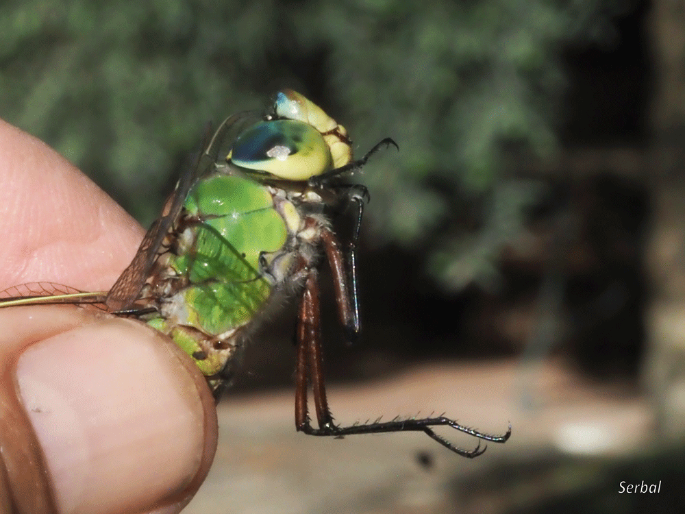 80 mm y envergadura hasta 120 mm. Gran libélula de la familia Aeshnidae, la más grande de Europa. Se distribuye por la mayor parte de África, oeste y centro de Asia, y Europa del sur y centro; en la Península Ibérica está asociada a humedales, siendo más frecuente en el centro y norte.
