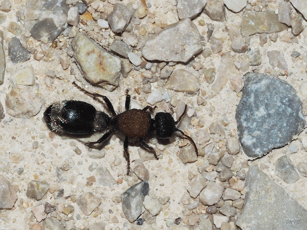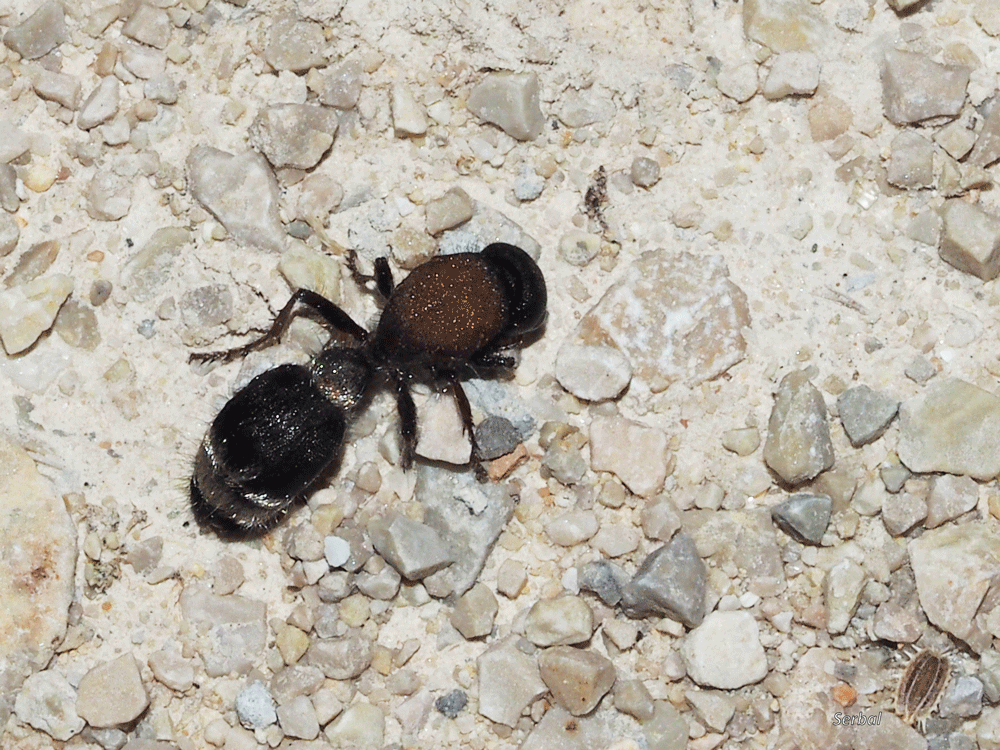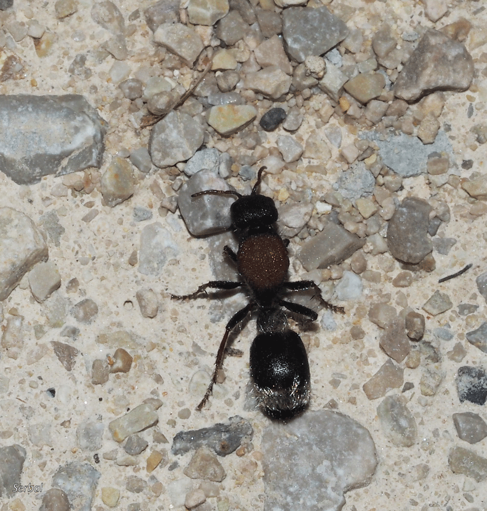 10 mm. Hormiga de terciopelo de la familia Mutillidae, al menos dos especies de este género, en la Península Ibérica: