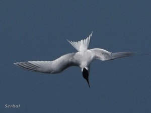 40 cm. Ave marina de tamaño medio de la familia Laridae; se distribuye por las costas de Europa, sureste de Norteamérica y Sudamérica, hay tres subespecies, de las cuales “sandvicensis” corresponde a la presente en la Península Ibérica.