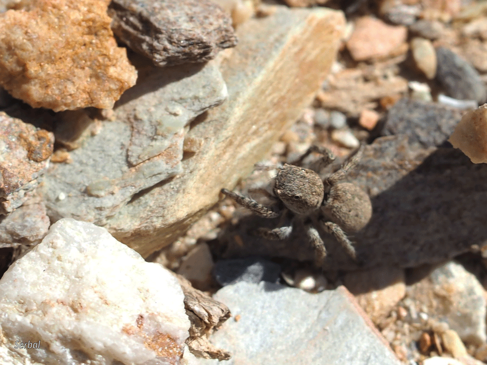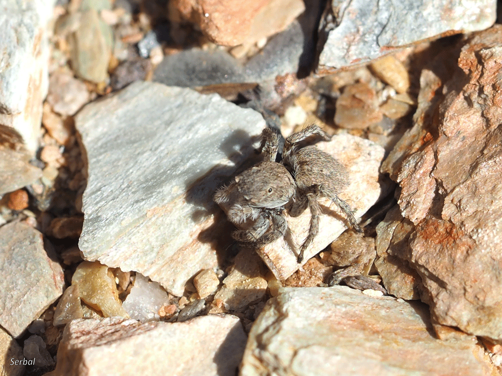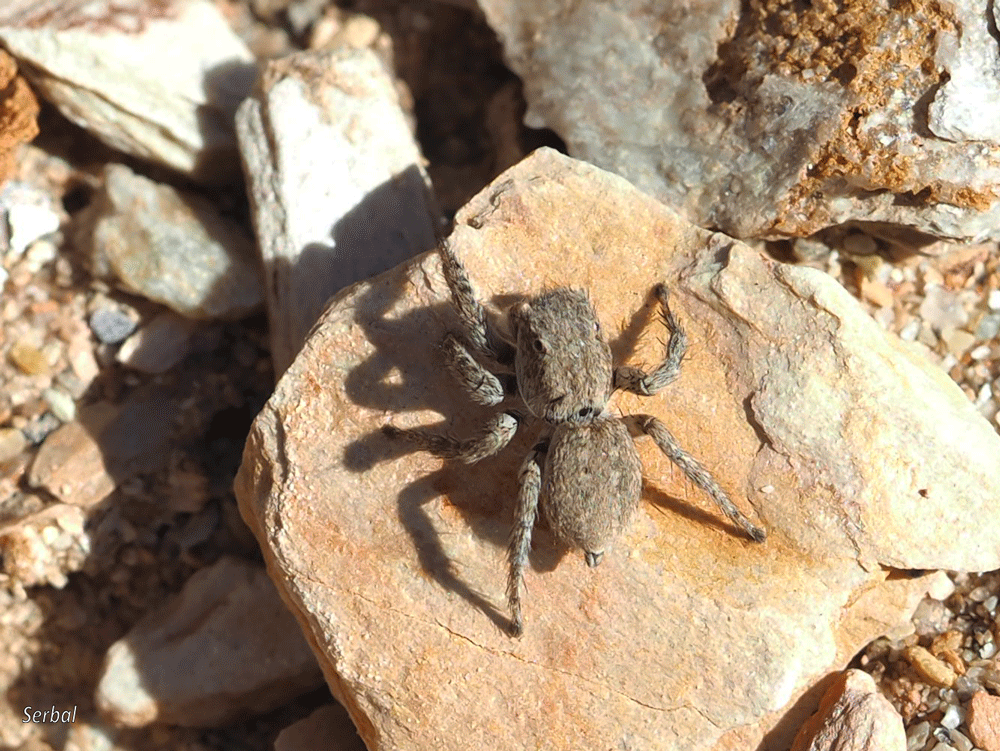 4-7 mm. Pequeña araña de la familia Salticidae; se distribuye por el área Paleártica; habitual en lugares cálidos, secos y pedregosos, normalmente espacios abiertos, desde el nivel del mar hasta los 2.500 msnm.