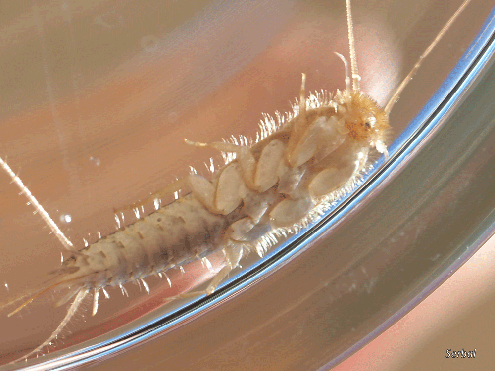 15-19 mm. Pequeño invertebrado del orden Thysanura y familia Lepismatidae; se distribuye por todo el mundo, cosmopolita.
