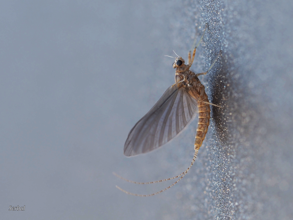 5-7 mm. Pequeño insecto de la familia Baetidae; ampliamente distribuido por toda el área Euroasiática; frecuente en la Península Ibérica.