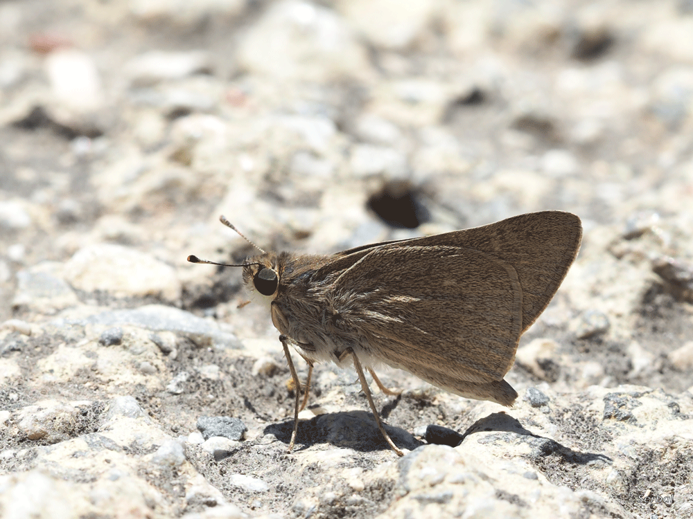 Las alas anteriores son puntiagudas, de color castaño claro, sin manchas; reverso de color castaño pálido grisáceo u oliváceo, 2-3 manchitas discales claras poco marcadas; la hembra tiene máculas y puntos discales claros, más pequeños hacia la costa en el anverso de las alas anteriores; en general el macho es más pequeño y oscuro y la hembra más grande y con algunas pequeñas manchas en anverso de las alas anteriores.
