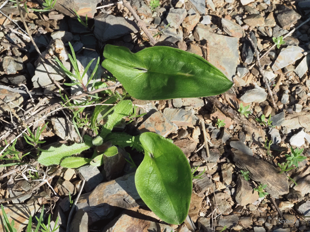10-20 cm. Planta herbácea perenne de la familia Araceae; se distribuye por las zonas cálidas de la Península Ibérica, sur de Francia, noroeste de África e Islas Canarias y Madeira.