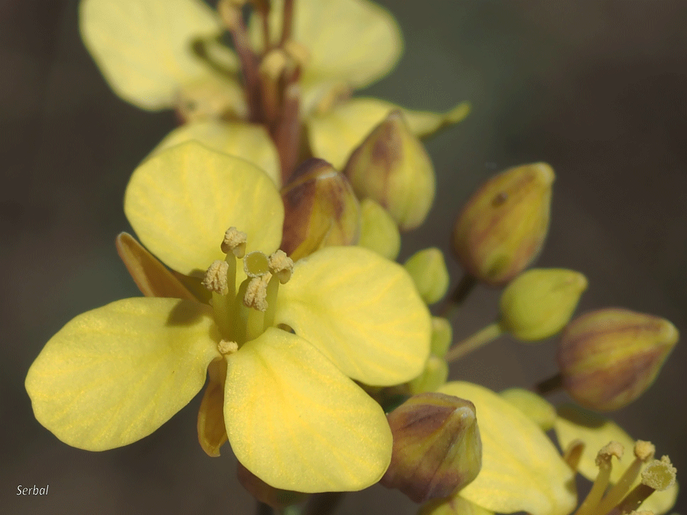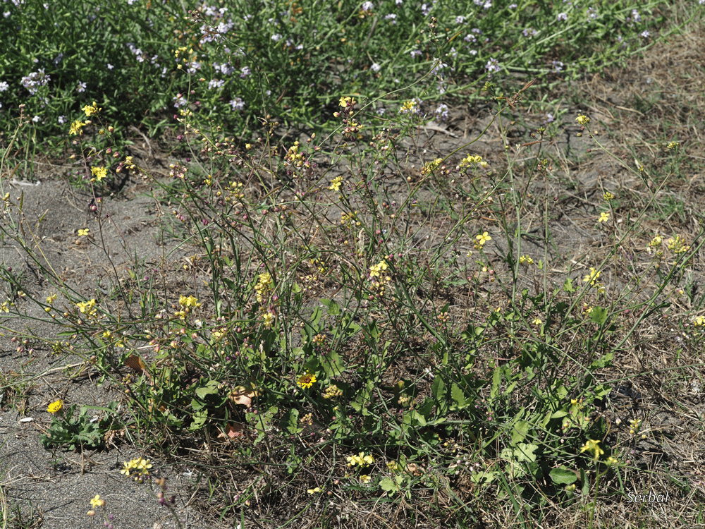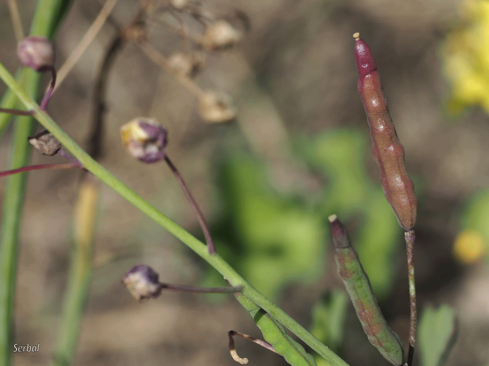 20-60 cm. Planta herbácea anual de la familia Brassicaceae; se distribuye por el norte de África y mitad sur de la Península Ibérica, desde el nivel del mar hasta los 1.400 msnm.