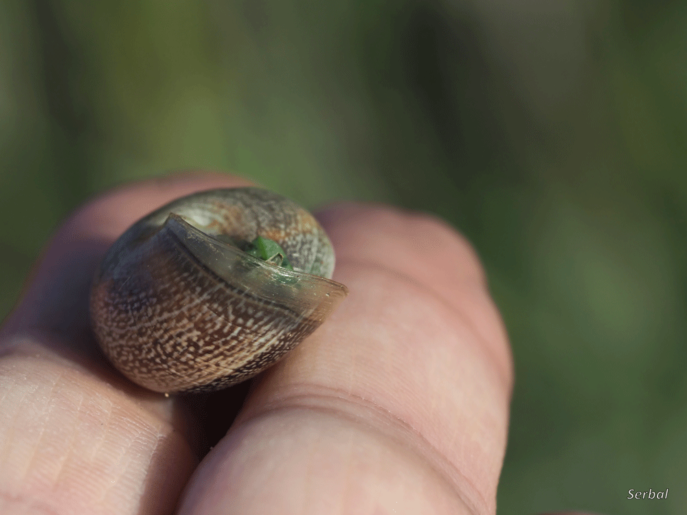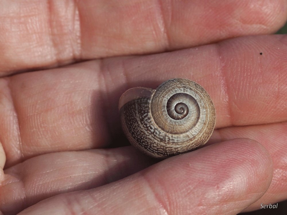 A continuación se muestra un caracol pequeño de esta especie, febrero 2025, P.N. Guadalhorce, Málaga.