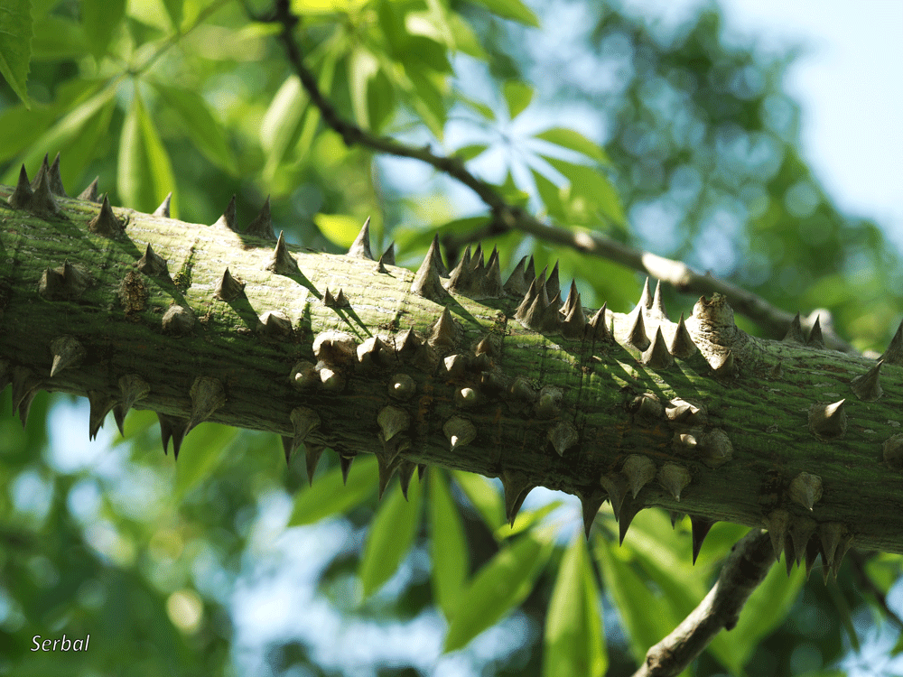 Árbol grande con tronco grisáceo verde y pequeñas espinas, grandes ramas con espinas más grandes de forma cónica y claro aspecto defensivo; el tronco, a veces, está ensanchado (barrigudo, árbol botella); la corteza de parte del árbol es verdosa, de forma que puede realizar la fotosíntesis a través de la piel, cuando las hojas están ausentes.
