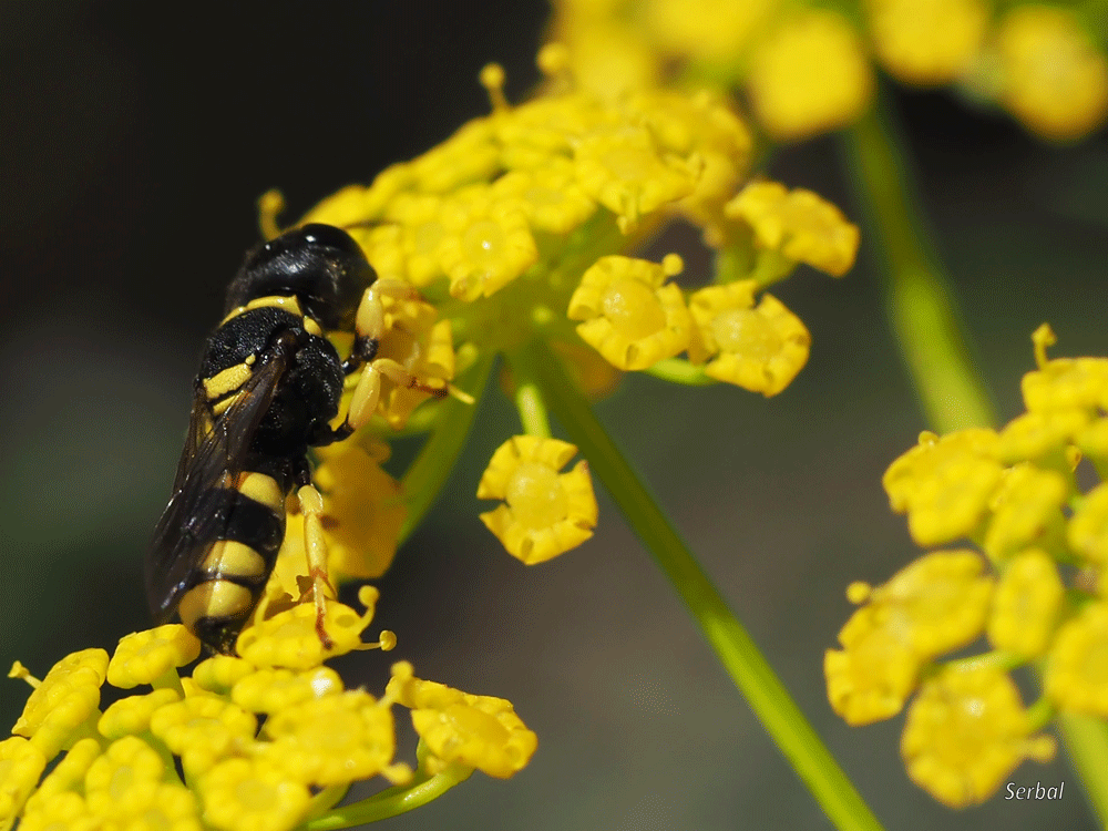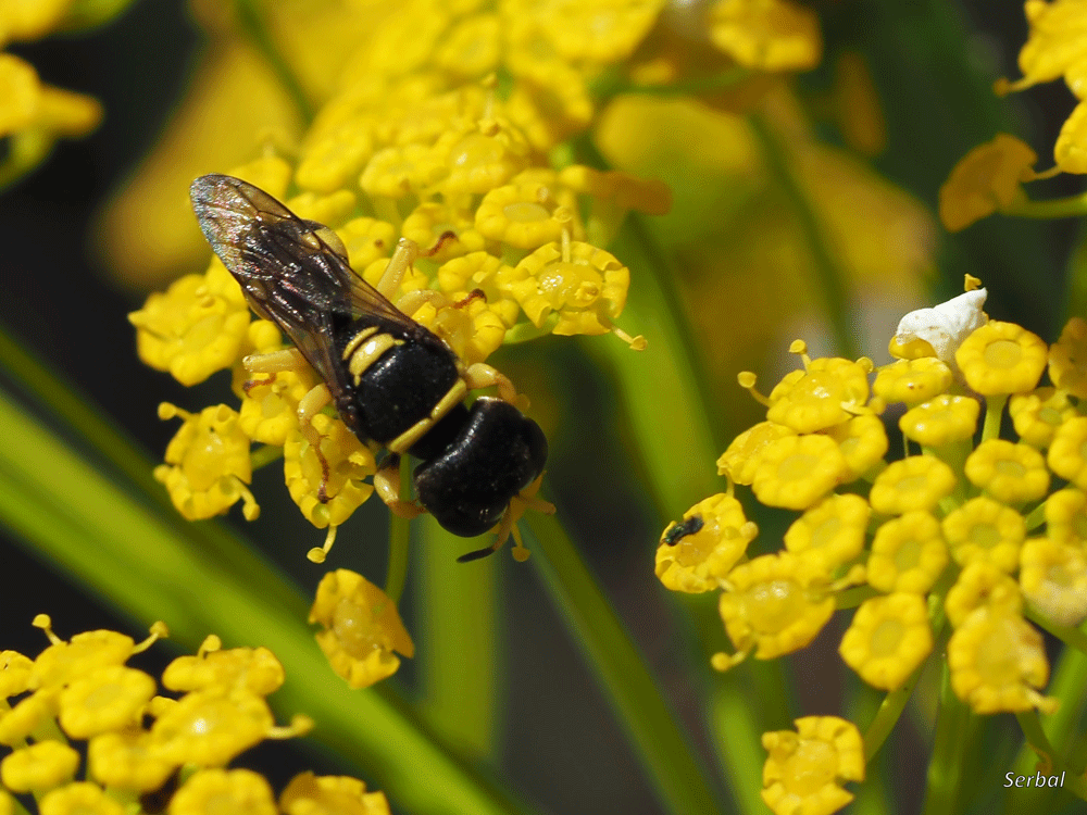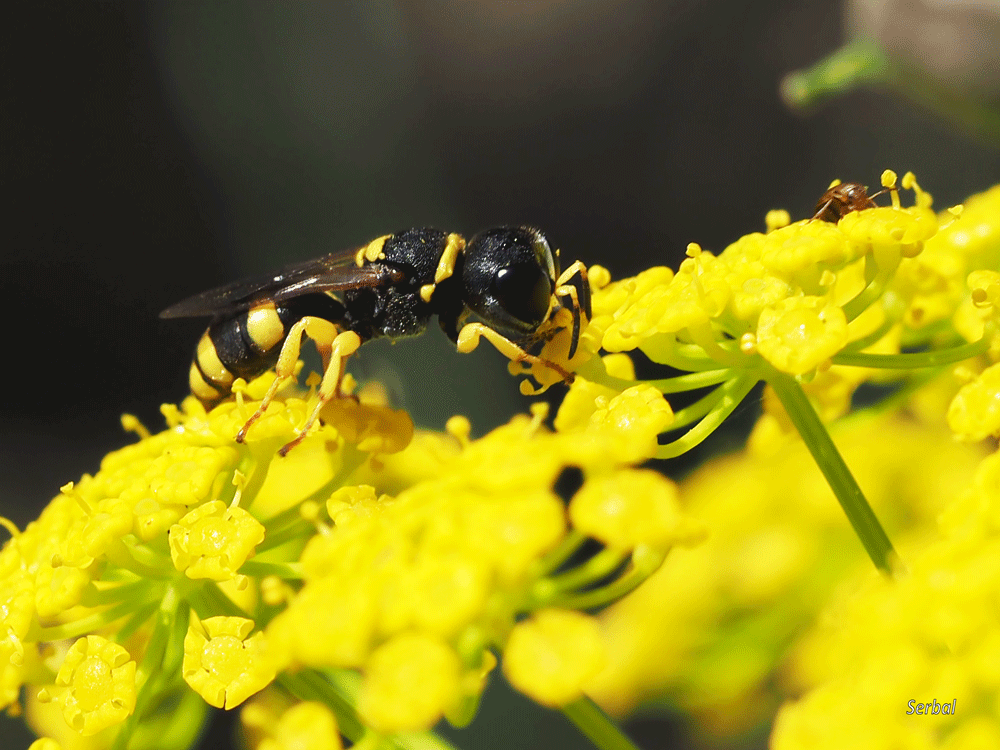 5-8 mm. Pequeña avispa de la familia Crabronidae; presente en el área mediterránea e Islas Canarias (donde he visto que aparecen registros); presente en la Península Ibérica.