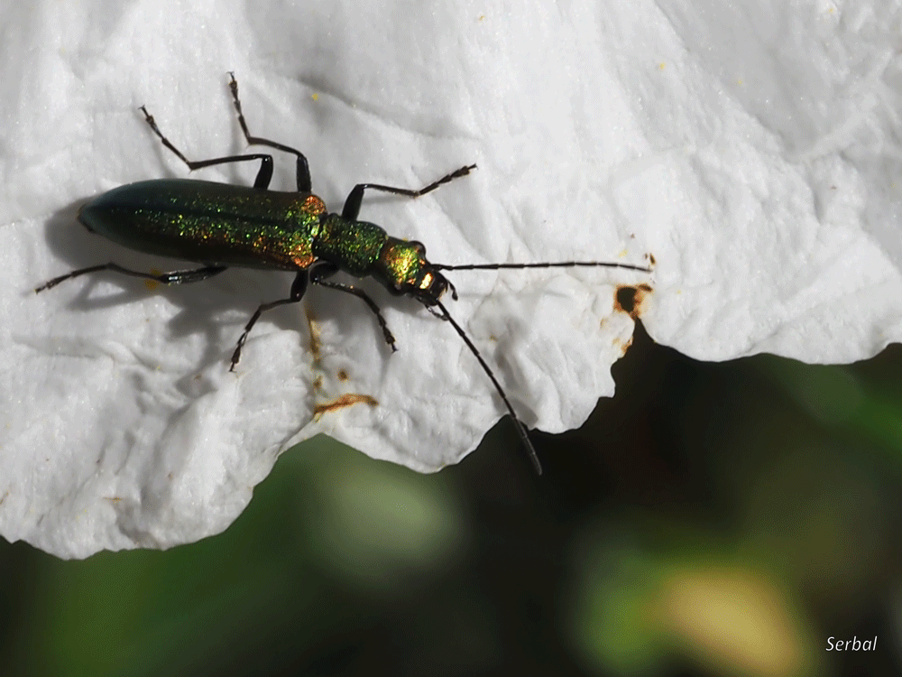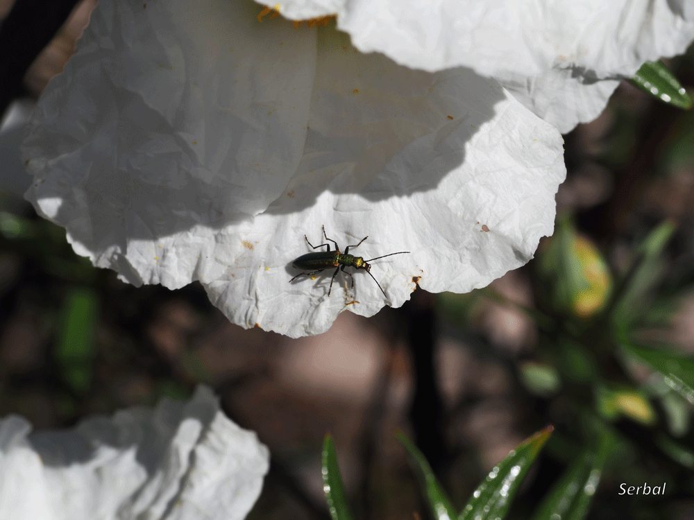 Bonito escarabajo fotografiado sobre flor de Cystus ladanifer en el P.N. Las Batuecas-Sierra de Francia, final de abril de 2023.