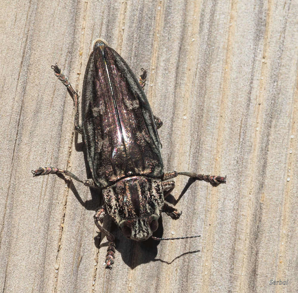 21-32 mm. Gran escarabajo de la familia Buprestidae; se distribuye por la región Paleártica; presente en la Península Ibérica, donde estén sus plantas nutricias.