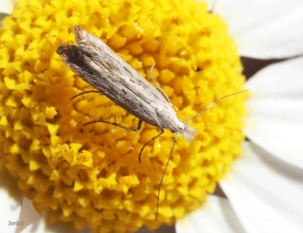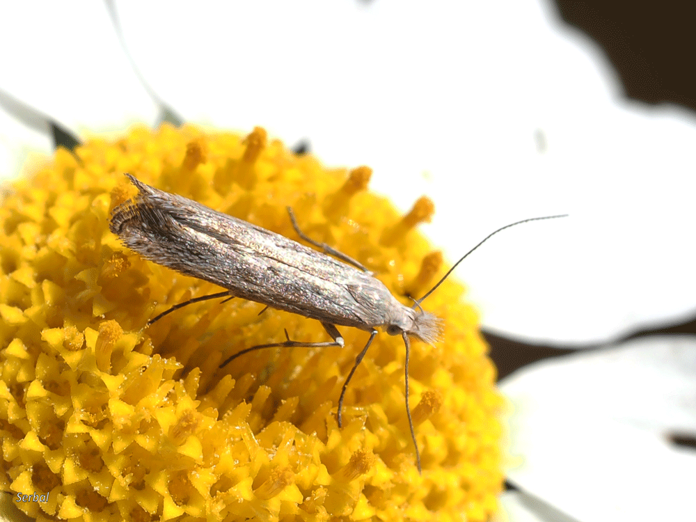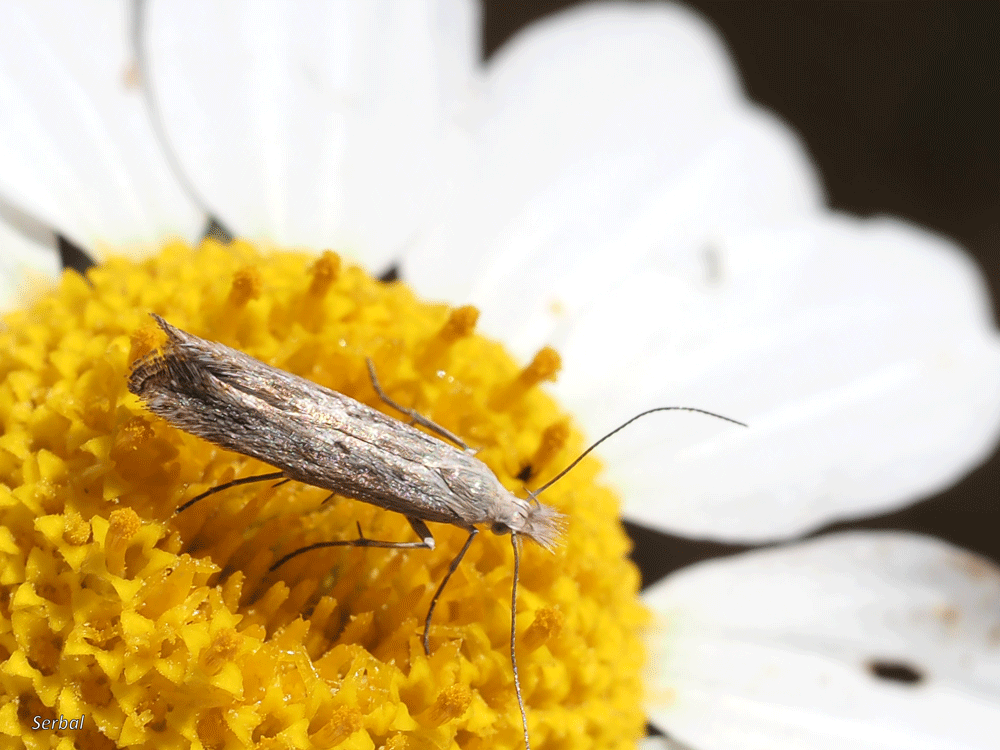 9-15 mm. Pequeña mariposa nocturna de la familia Gelechiidae; se distribuye por la mayor parte de Europa llegando por el este hasta Asia central; presente en la mayor parte de la Península Ibérica.
