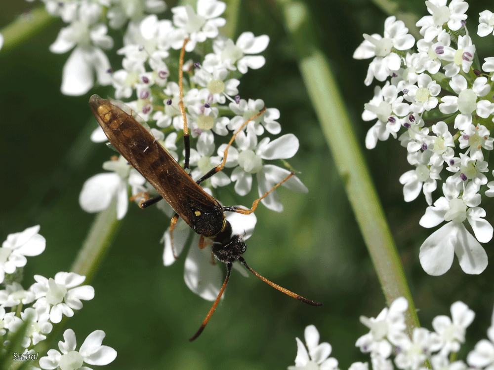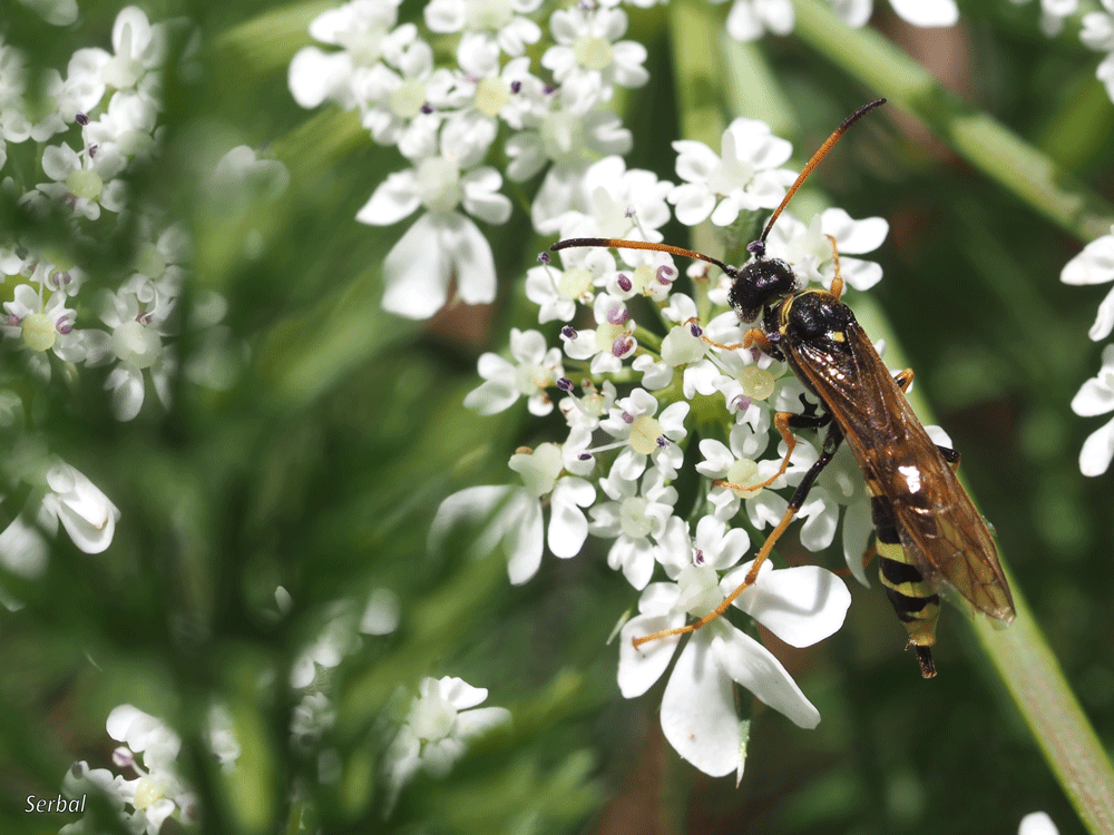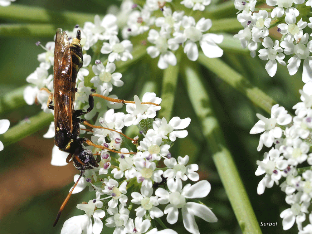 10-12 mm. Pequeña avispa de la familia Cephidae; se distribuye por el sur de Francia, Península Ibérica y noroeste de África.