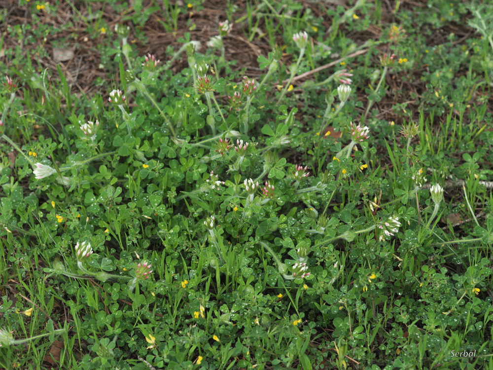 Este pequeño trébol rojizo crece en espacios abiertos del área mediterránea, márgenes de caminos y carriles, también en cultivos de secano.