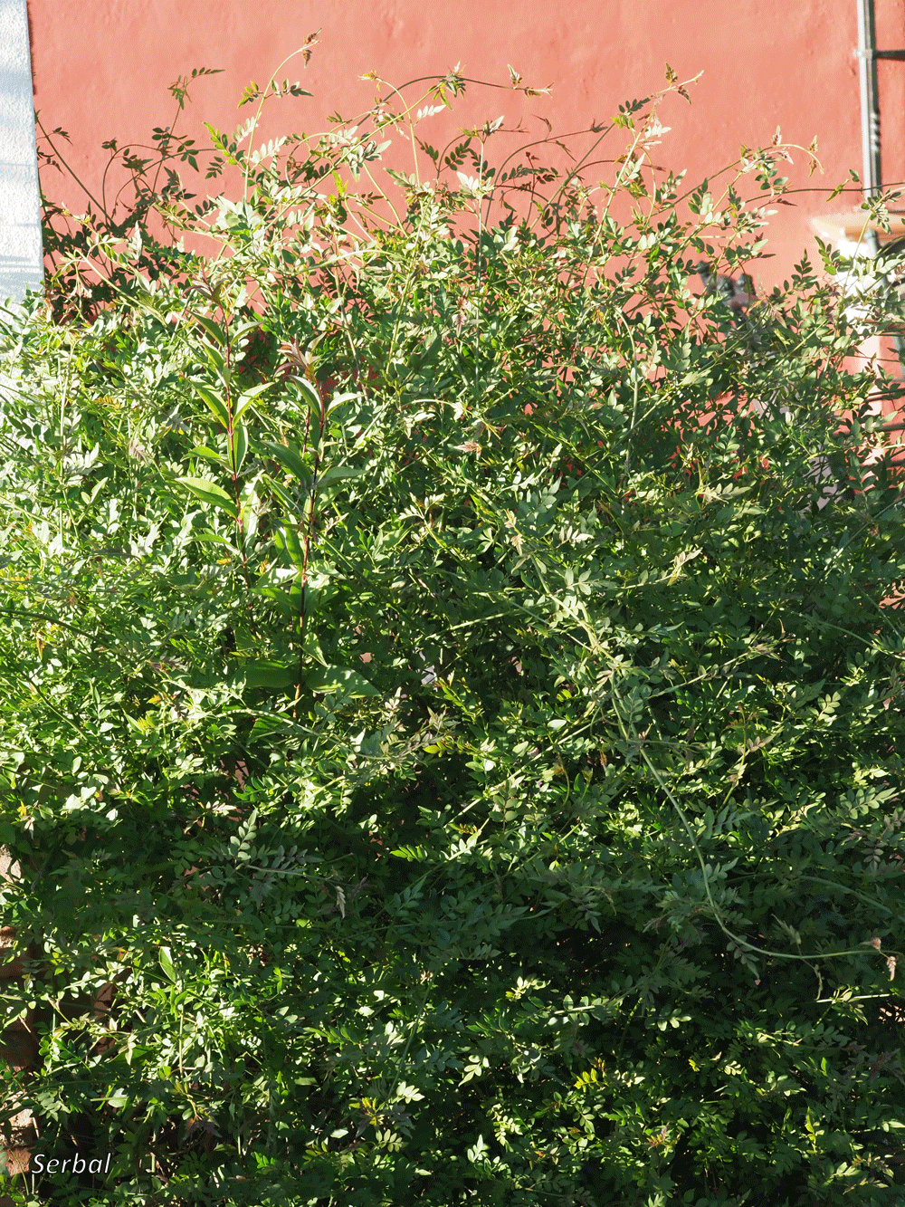 Planta de raíz profunda, tallos circulares, cilíndricos y lignificados los viejos y algo angulosos los jóvenes, los tallos jóvenes suelen tener tonos rojizos; planta sin vello; tiende a enmarañarse con gran profusión de tallos que precisan de soporte.