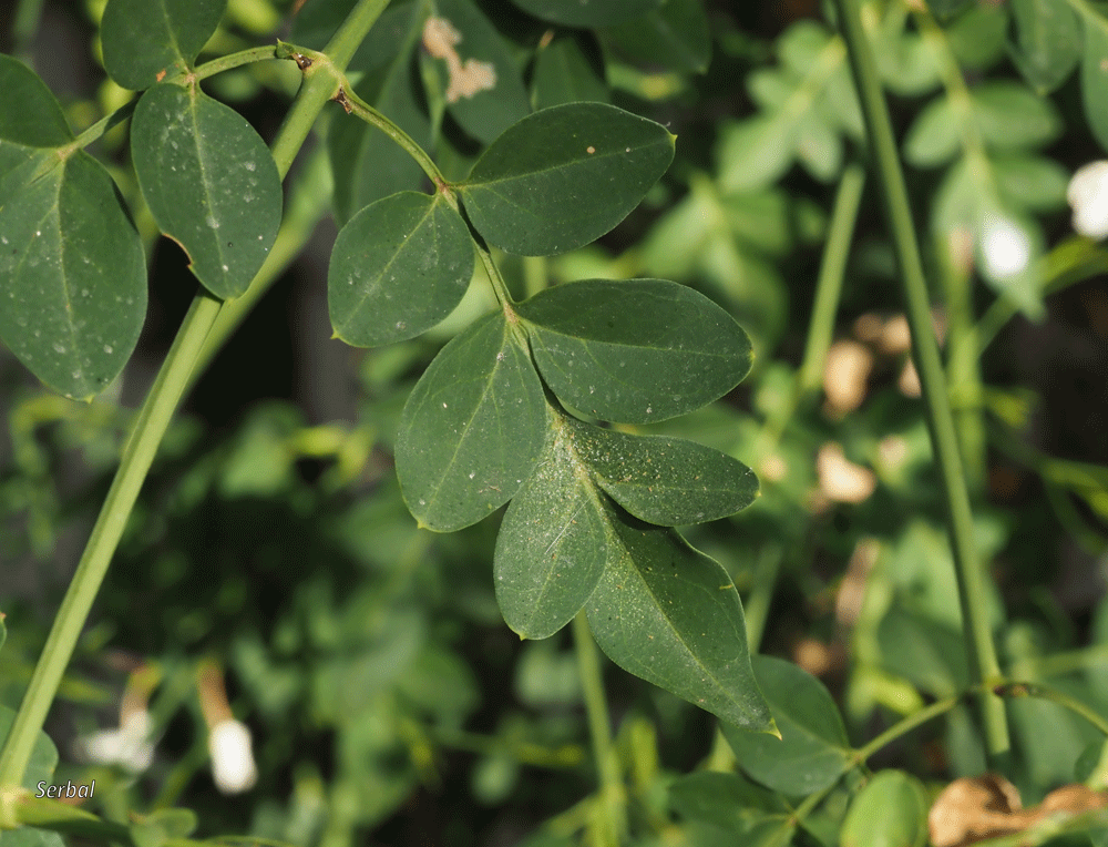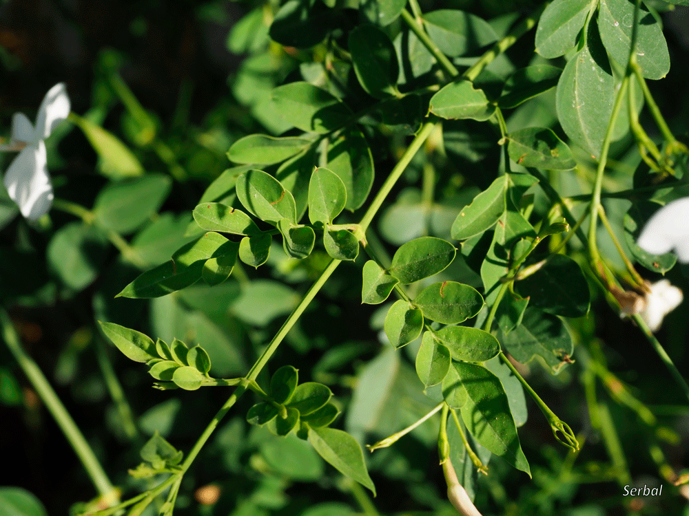 Hojas opuestas, están compuestas por 5-9 foliolos, el último más grande, foliolos ovados, lanceolados o lineares, color verde, más claro por el envés, pecioladas.