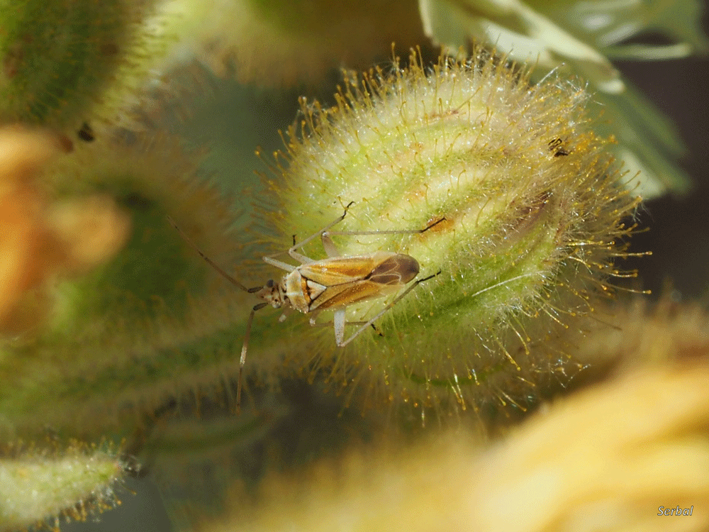 4-5 mm. Pequeña chinche de la familia Miridae; se distribuye por la ecozona Paleártica, siendo escasa o ausente en el norte de Europa; frecuente en la Península Ibérica.