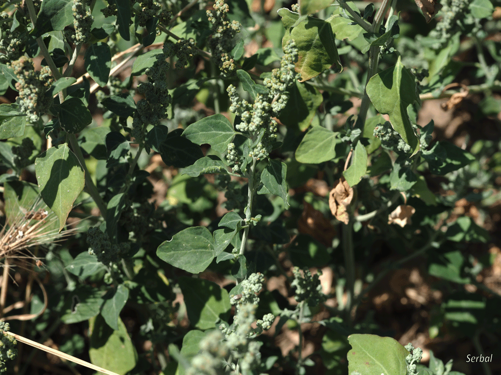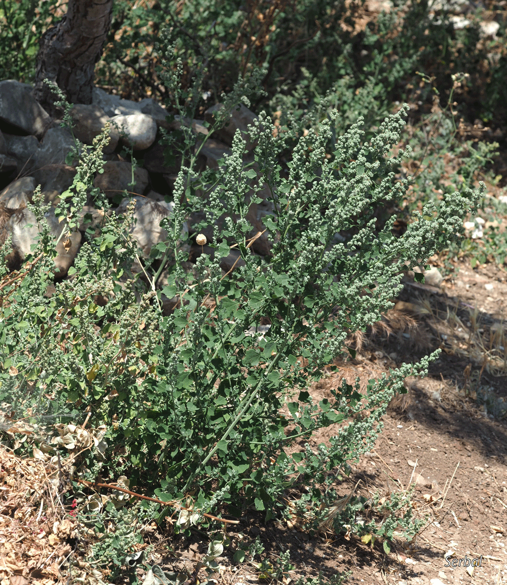 10 150 cm. Planta herbácea anual de la familia Chenopodiaceae; es originaria de la región Paleártica, desde ahí se ha extendido a la mayor parte del mundo templado; dispersa por toda la Península Ibérica.