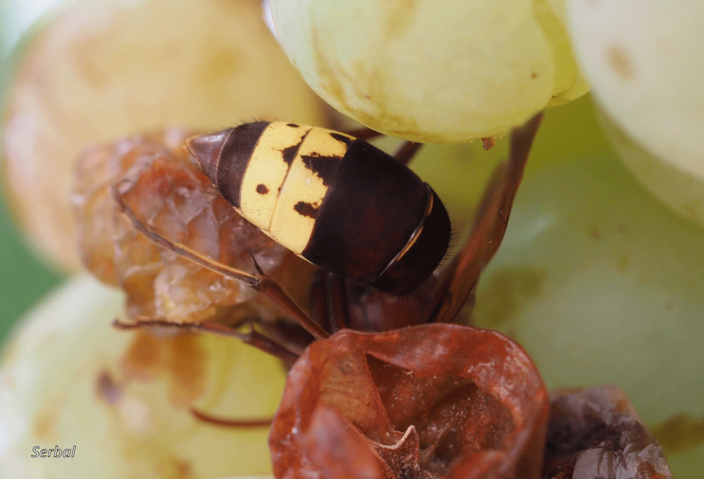 Las fotos que se muestran están tomadas en nuestra casa de campo en Serranía de Ronda (Málaga), bastantes ejemplares atraídos por la uva madura de una parra, en la puerta de la casa, las fotografié muy de cerca, sin prestar atención a mi presencia, septiembre 2024.