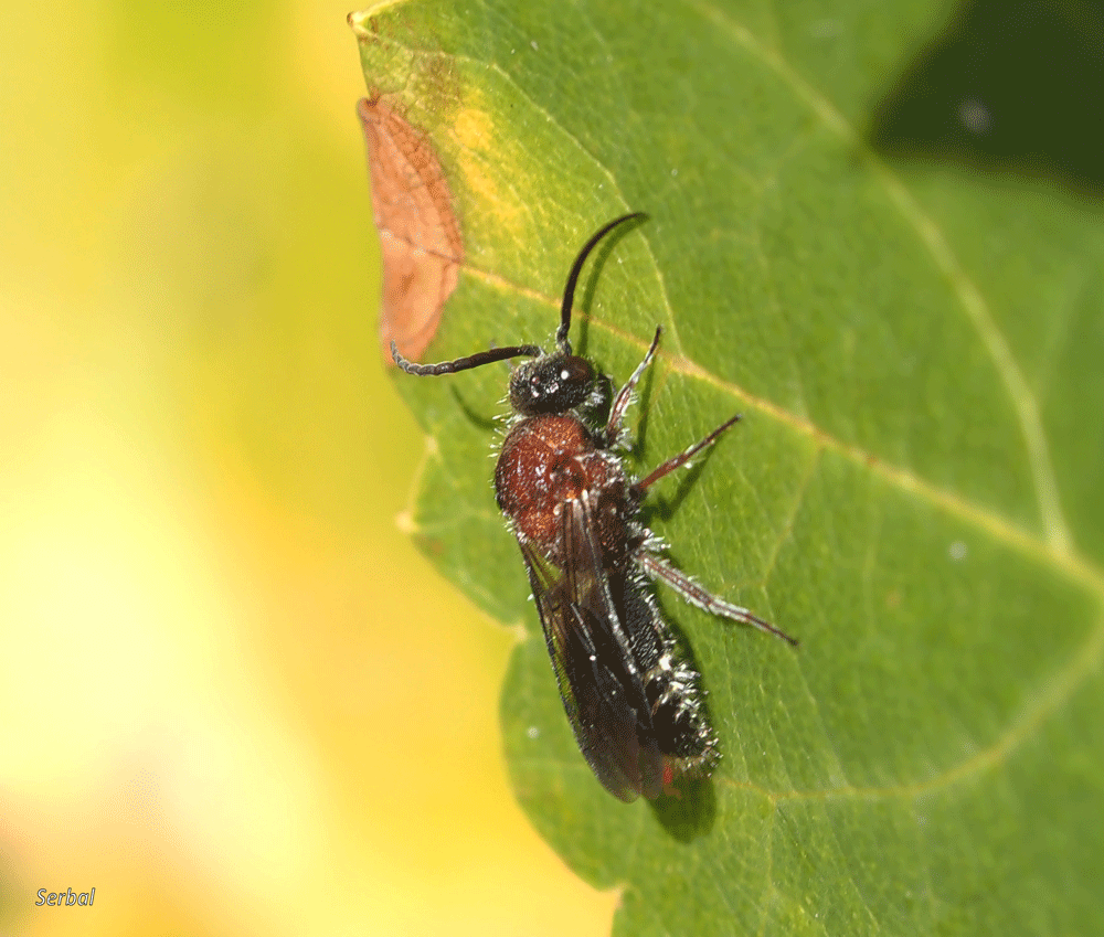 7 mm. Pequeña avispa de la familia Mutillidae; es de distribución mediterránea; presente en la Península Ibérica.