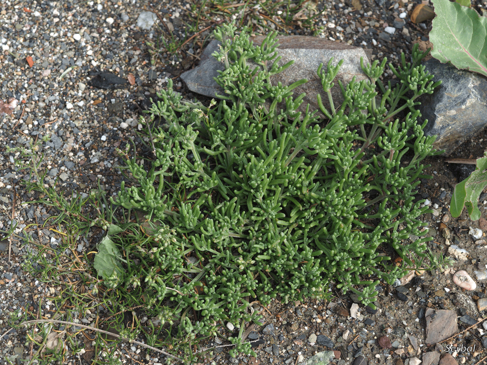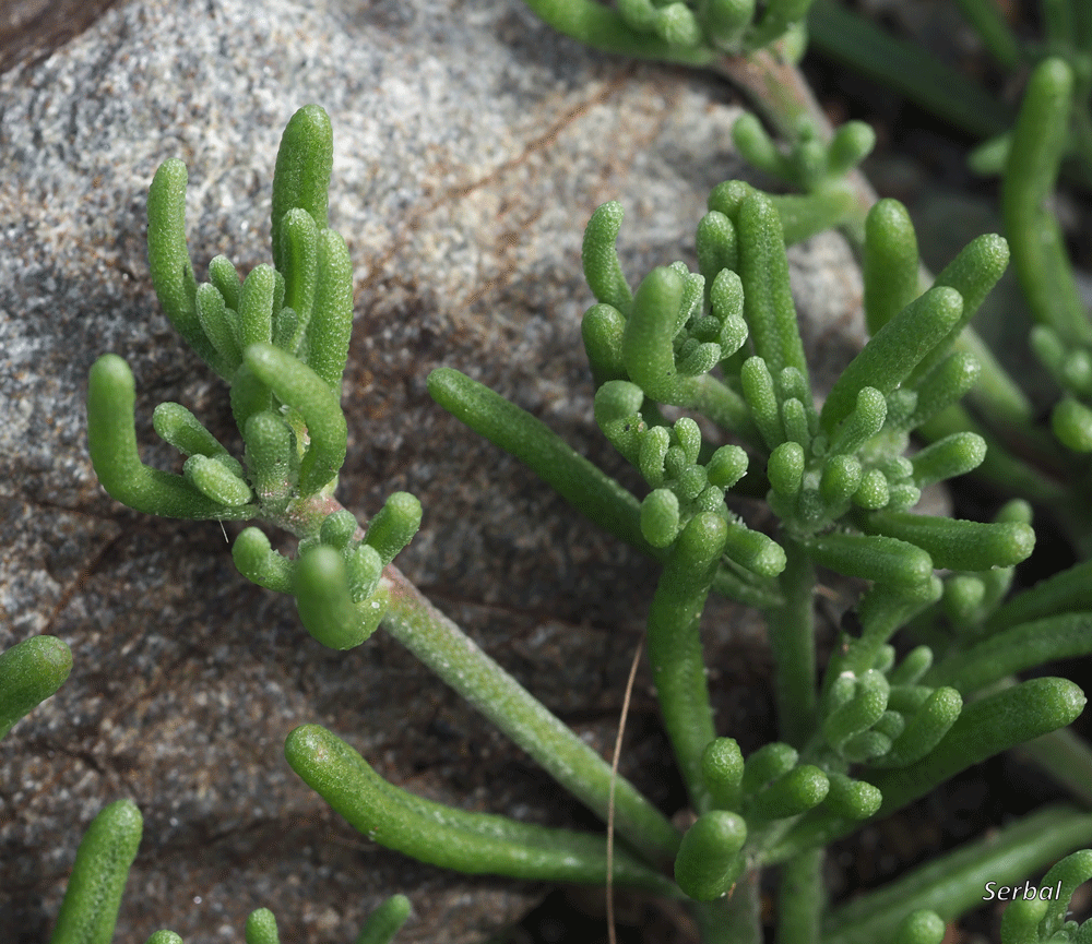 25 cm de altitud. Planta herbácea anual de la familia Aizoaceae; se distribuye por el área mediterránea, región arábica y Persia; dentro de la Península Ibérica la encontramos en las costas mediterráneas y atlánticas.