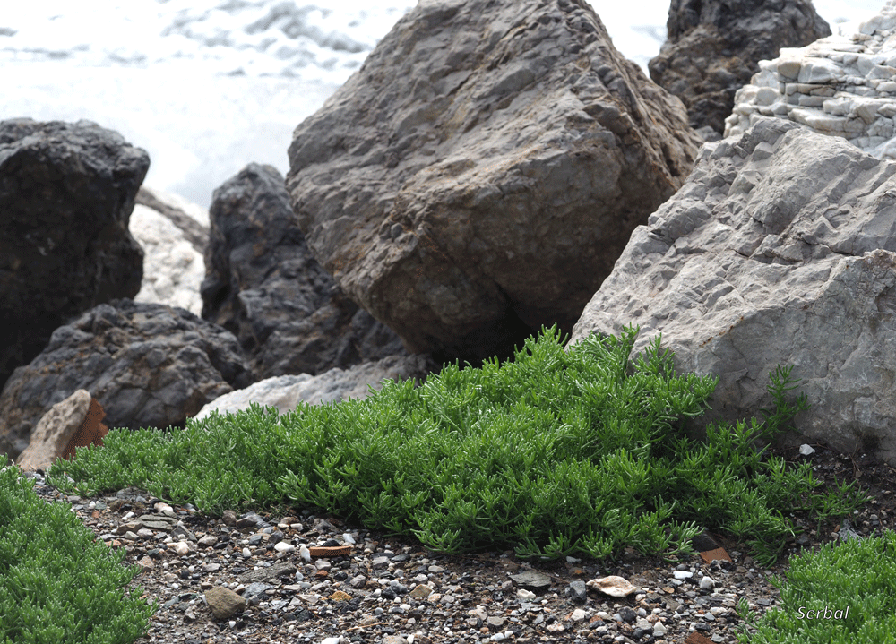 Por lo demás es una planta tapizante que se desarrolla muy bien en ambientes costeros, formando grandes alfombras verdes que viran a rojo con el tiempo.