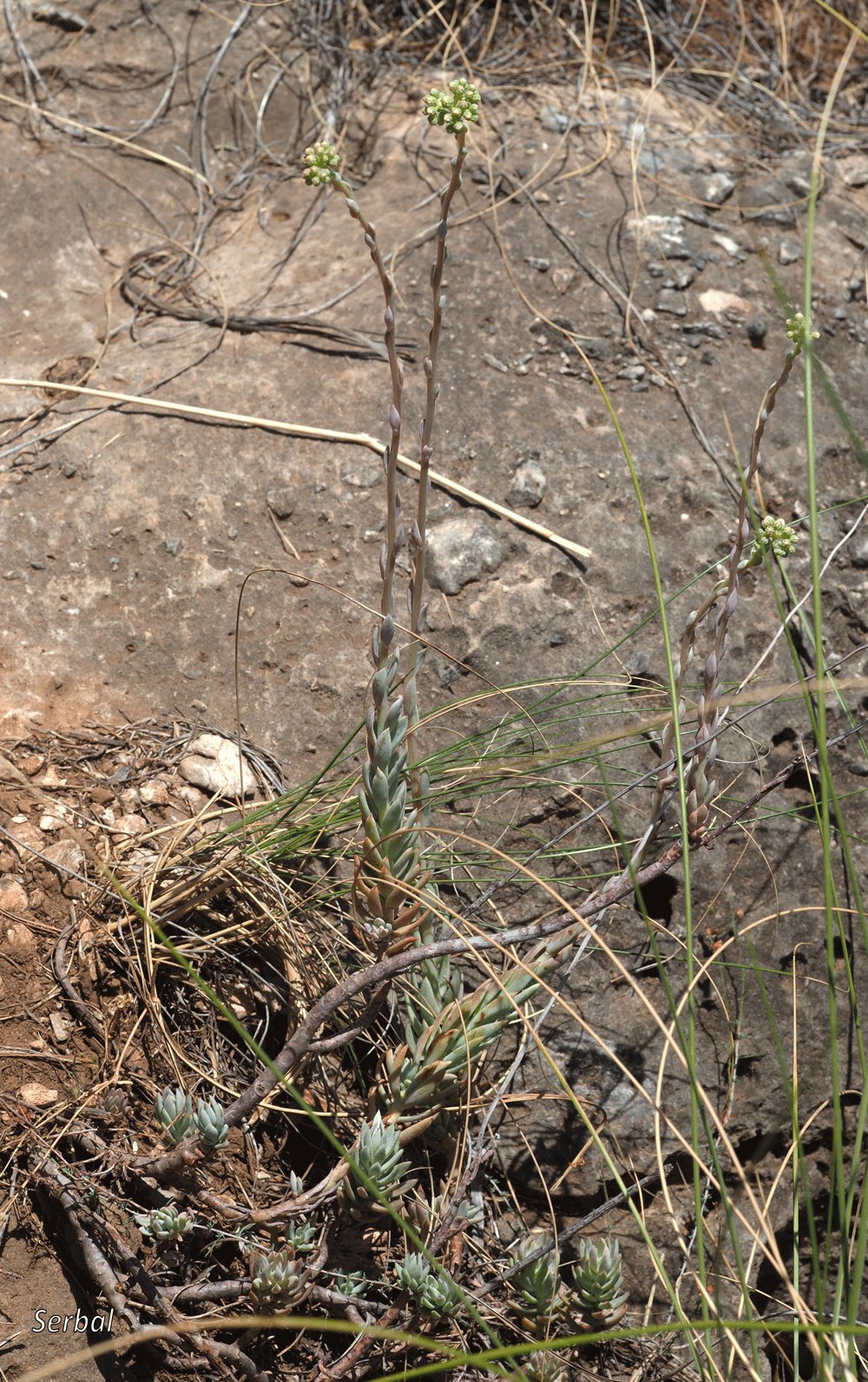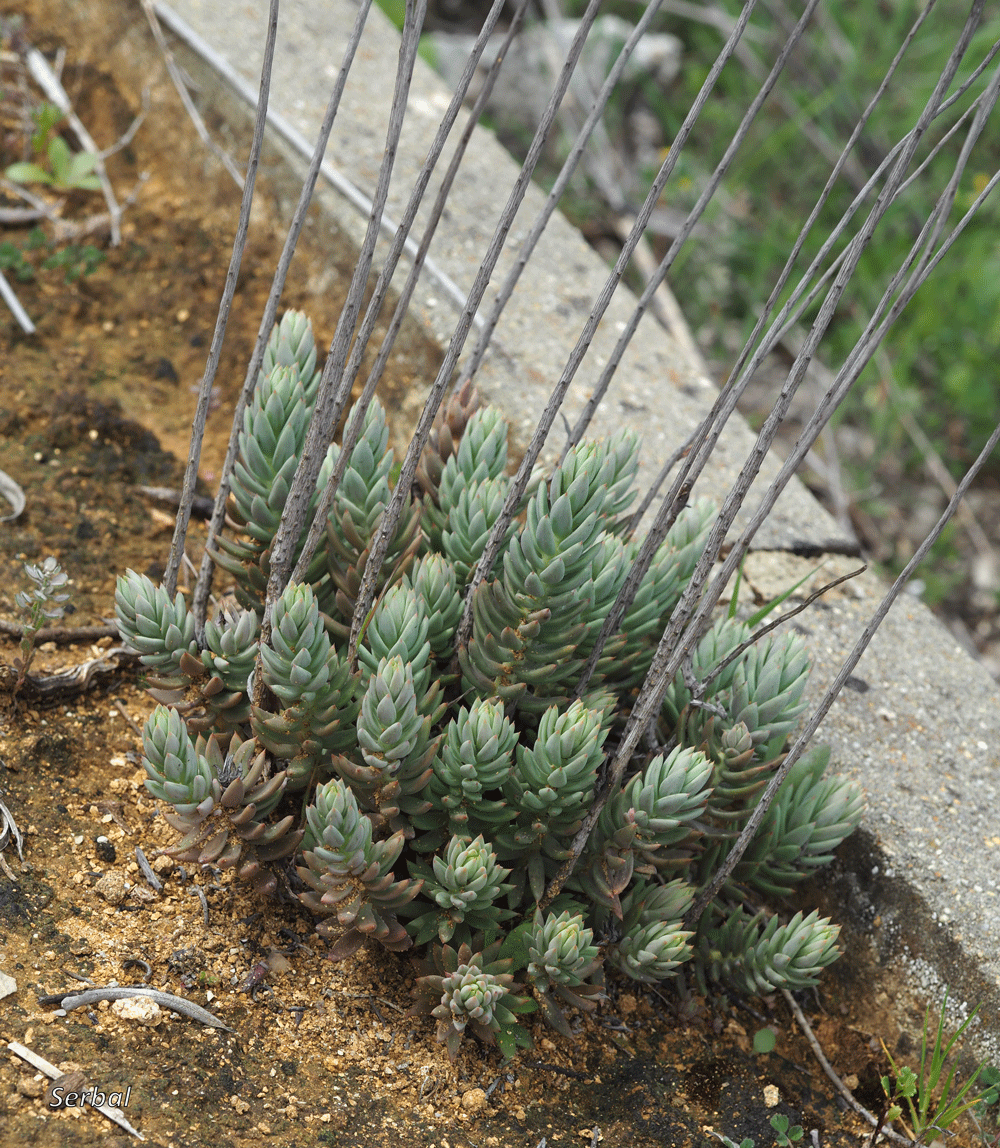 50 cm. Planta perenne de la familia Crassulaceae; es originaria de Europa meridional y área mediterránea; presente en la mayor parte de la Península Ibérica, siendo rara en el extremo noroeste.