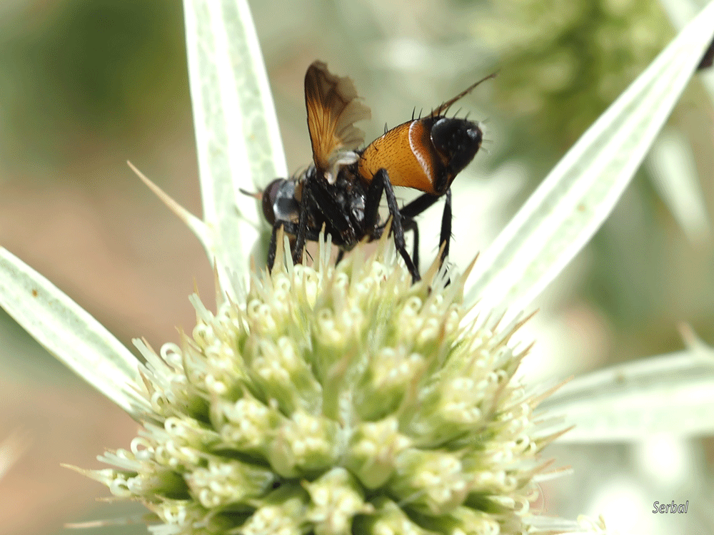 Las hembras ponen los huevos sobre las chinches, especialmente del género Odontotarsus, un huevo por chinche, la pequeña larva se alimenta del interior de la chinche, muriendo la chinche al final del desarrollo larvario, siendo esta mosca un control biológico para el control de estos hemípteros, que en ocasiones pueden ocasionar daños a los cultivos de cereal.