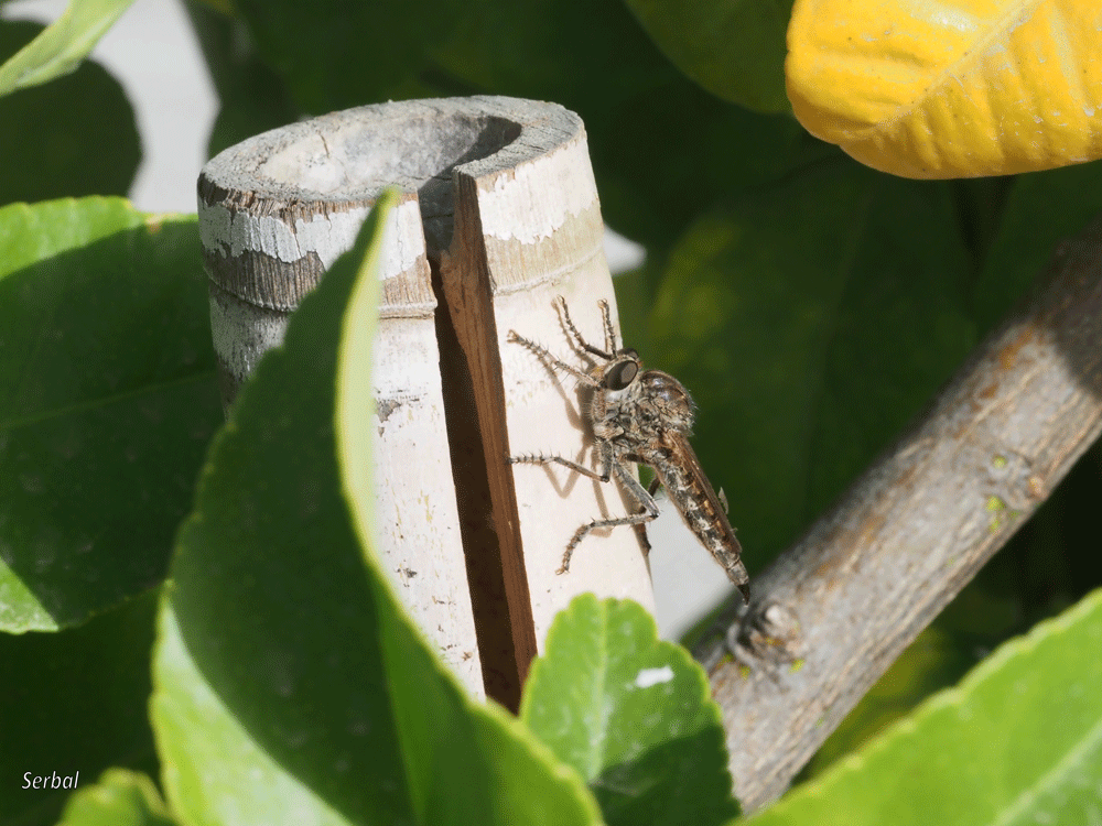 13-18 m. Mosca de la familia Asilidae; se distribuye por el centro y sur de Europa; presente en la Península Ibérica.