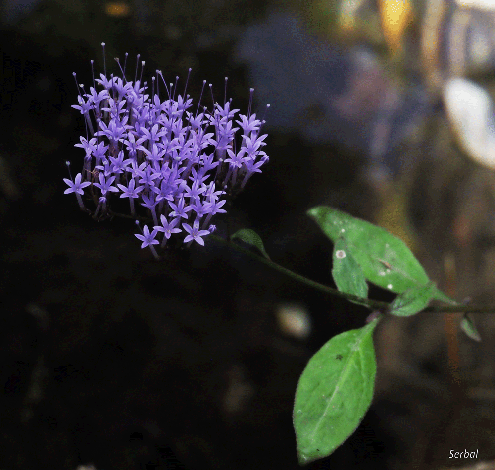 Las flores se agrupan en umbelas terminales o axilares de múltiples y pequeñas flores azules muy vistosas, umbelas de hasta 12 cm de diámetro, pedúnculo largo, en las divisiones de la umbela encontramos pequeñas brácteas lineares; cada flor tiene un cáliz abombado en la base y acabado en 5 dientes, corola tubular larga y estrecha que se abre al exterior por 5 pétalos violetas lila, dentro 5 estambres con anteras violeta y un estilo muy largo que sobresale en una longitud tan larga como la corola, el estilo se engrosa en el extremo.