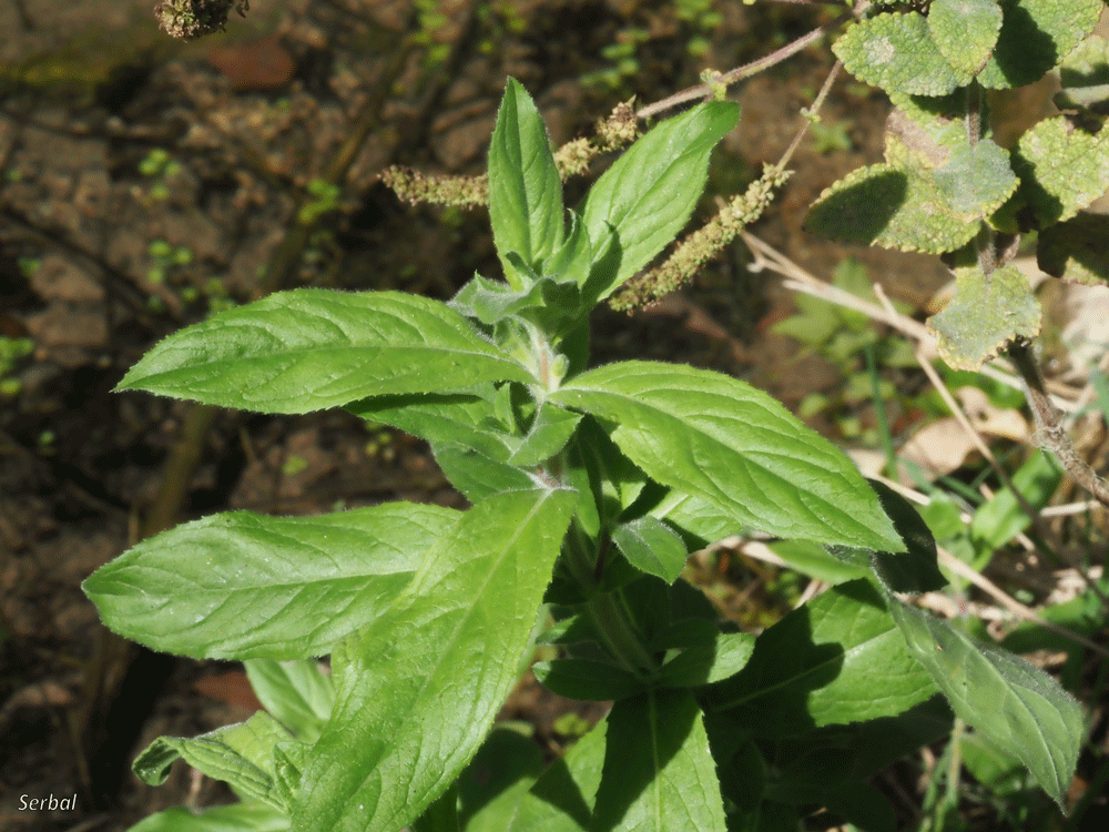 Hojas de color verde claro, vello corto blanquecino, especialmente por el envés, borde foliar dentado, no tiene pecíolo (sésil o sentada), las hojas pueden medir hasta 10 cm de longitud, siendo las medias las de mayor tamaño, disposición opuesta.